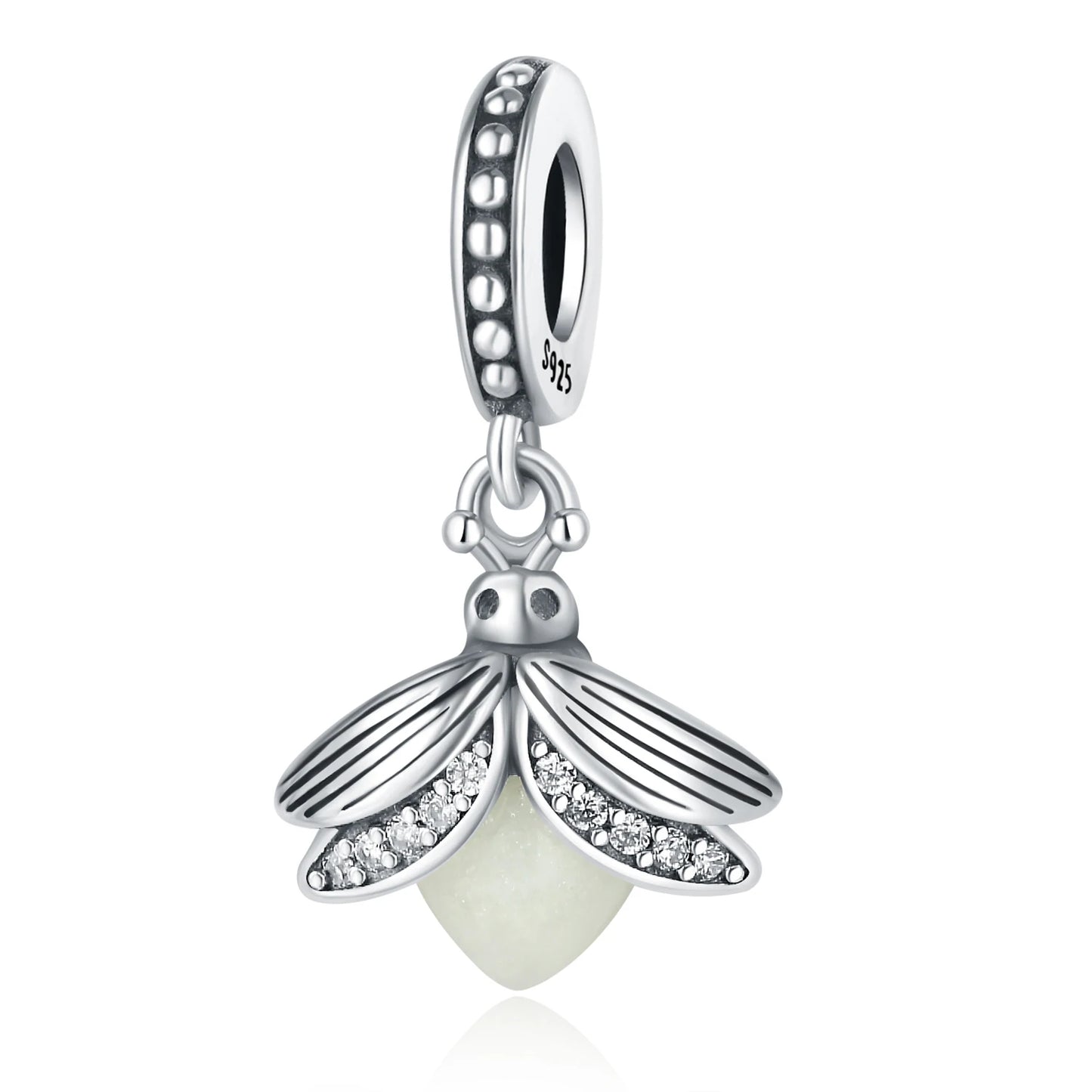 100% 925 Sterling Silver Creative Blue Luminous Firefly Charms Pendants Fit Qikaola 925 Original Bracelets DIY Birthday Jewelry