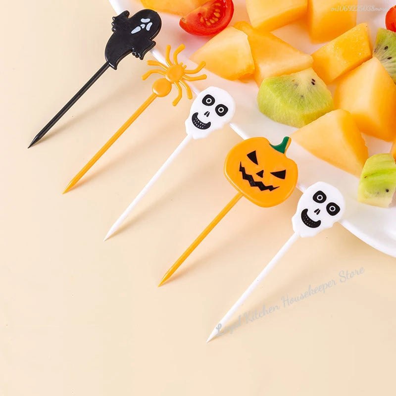 10pcs Halloween Fruit Fork Cartoon Children Cake Dessert Pick Toothpick Lunch Pick Food Fork Bento Party Decoration Random Style