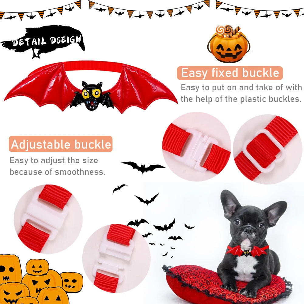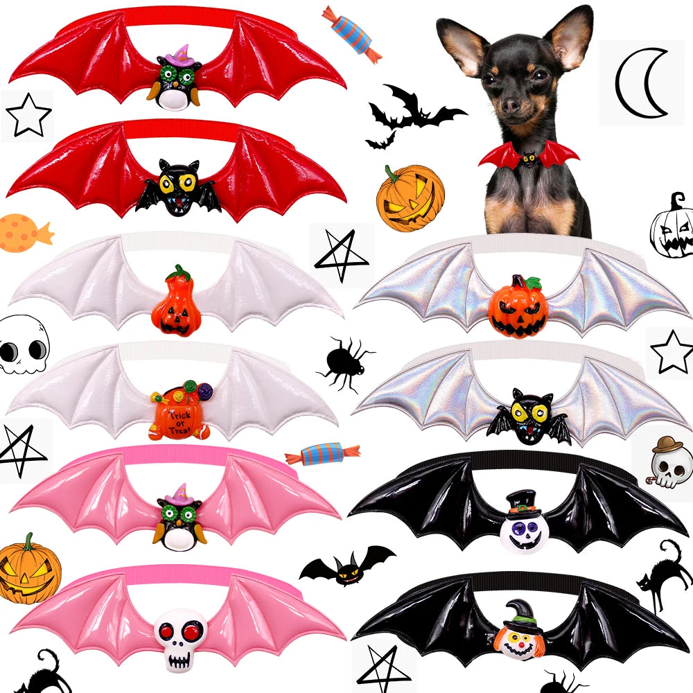 10PCS Halloween Series Pet Bowtie Bat Wings Skull Pumpkin Pet Dog Bow Tie Pet Collar Holiday Party Bulk Pet Accessories