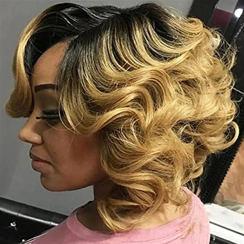 12 Inch Natural Synthetic Wigs for Women Short Black Gradient Gold Wig Heat Resistant Hair For Daily Use Festival Ball Halloween