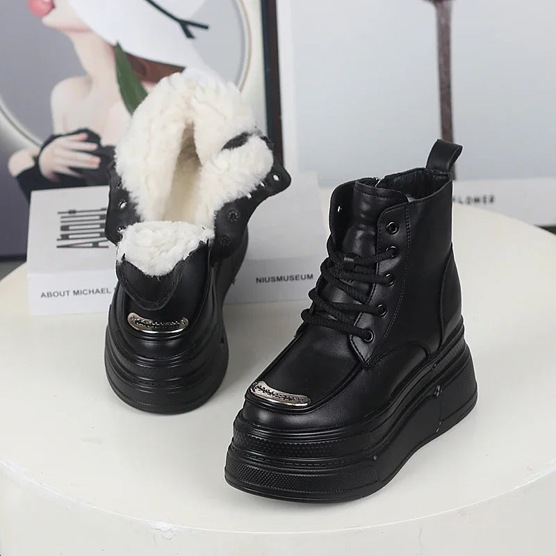 12CM Genuine Leather Winter Autumn Chimney Plush Spring Ankle Booties Fashion ZIP Women Moccasins Platform Wedge Shoes