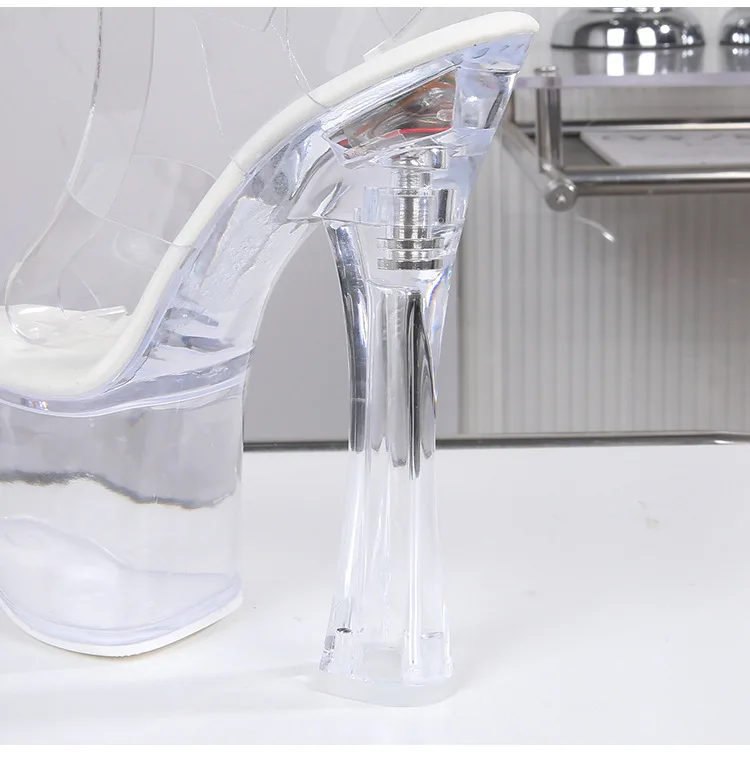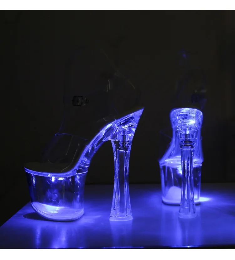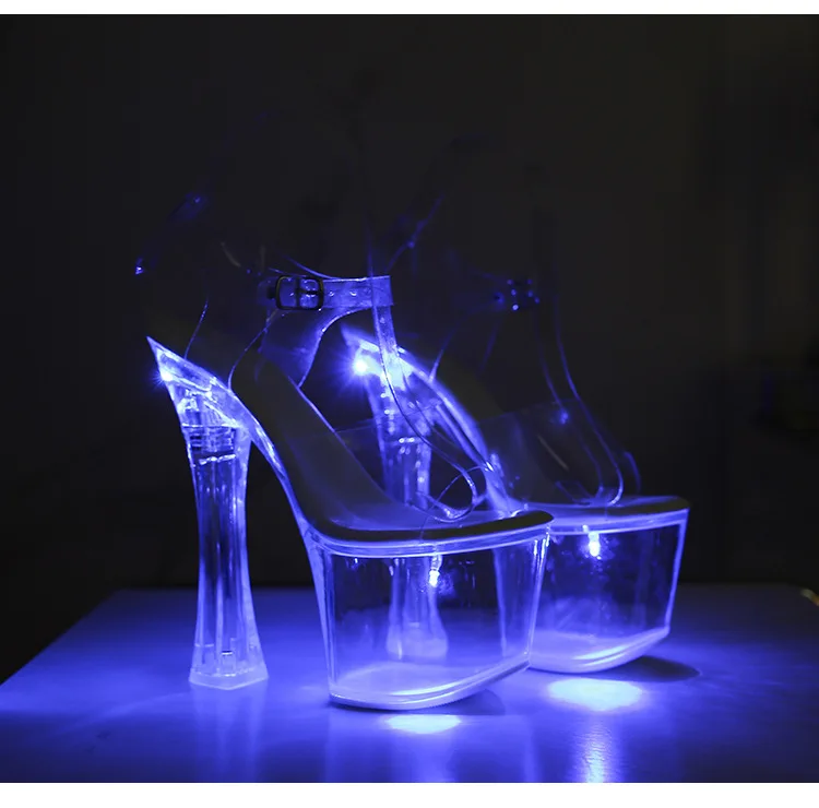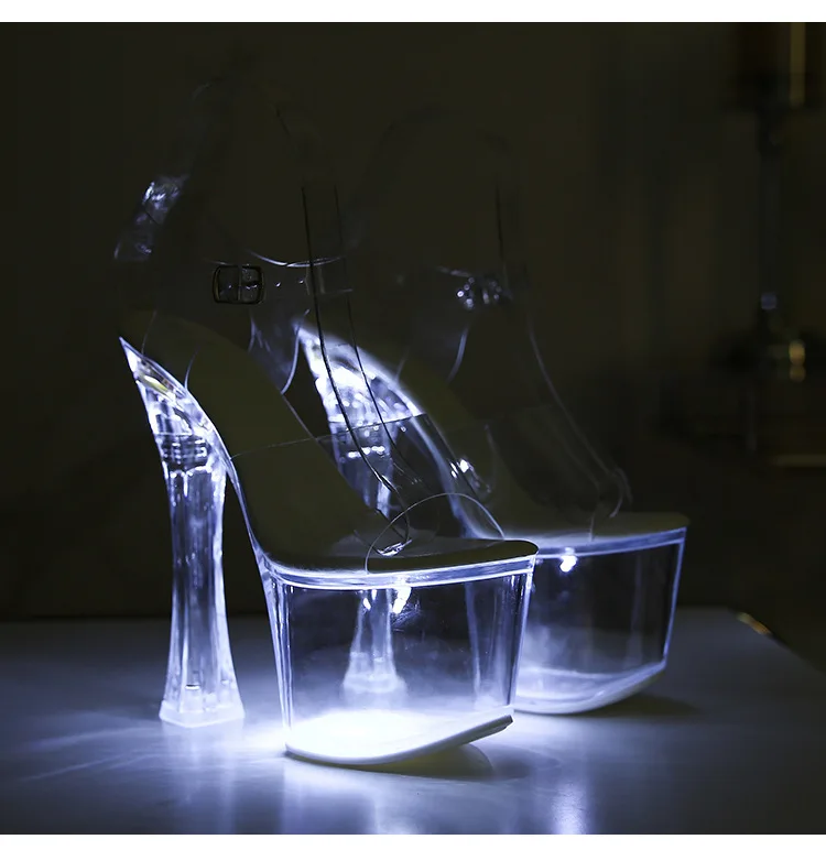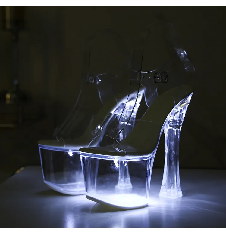 17.5CM Extreme High Heels Glowing Platform Clear Heels Nightclub Sandals For Women Transparent PVC Fashion Model Catwalk Shoes