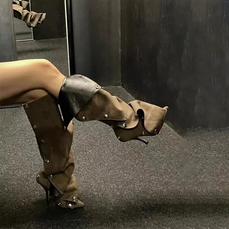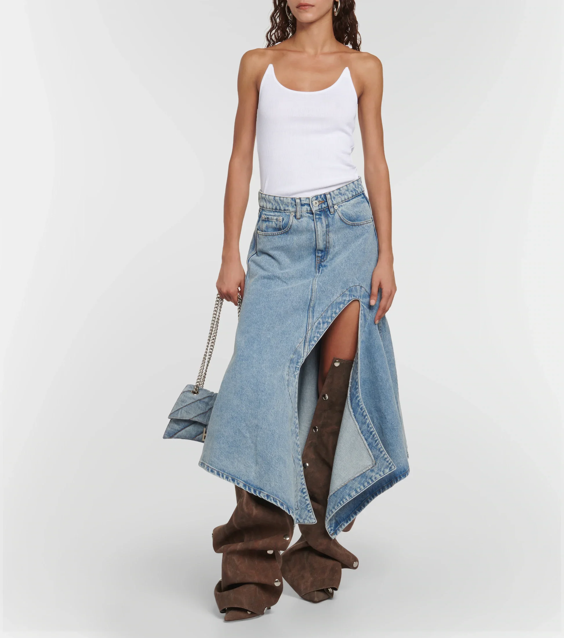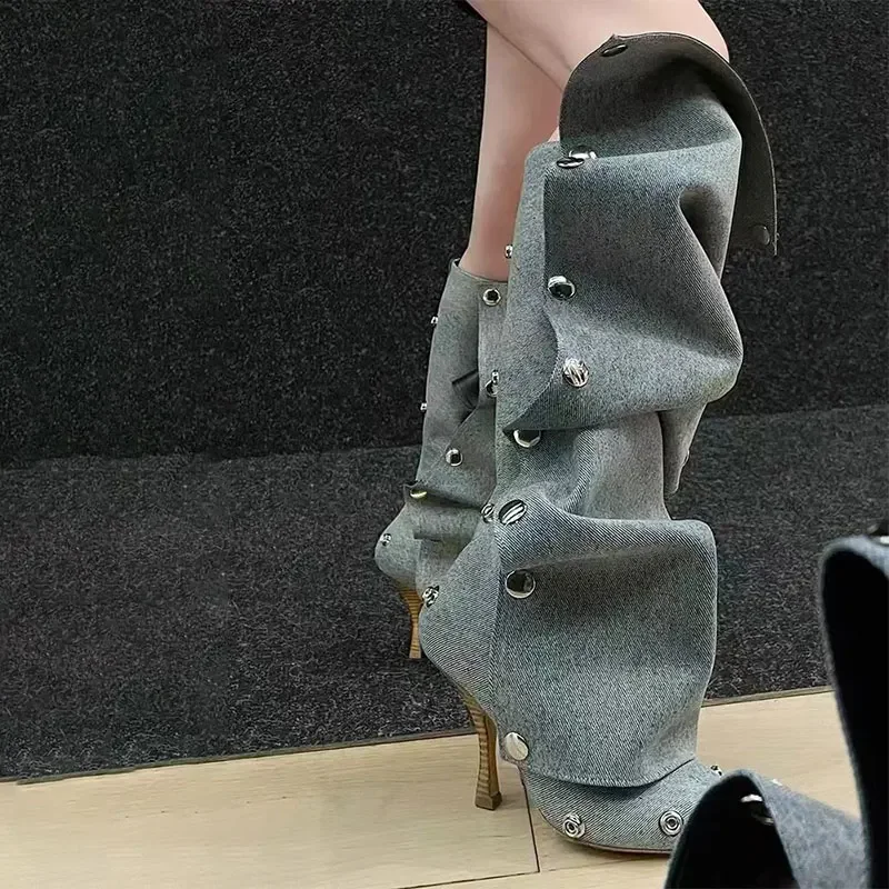 2024 Metal Buckle Detachable Denim Boots 10cm High Heel Boots 35-45 Internet Red Model Fashion Walking Red Carpet Thigh Boots