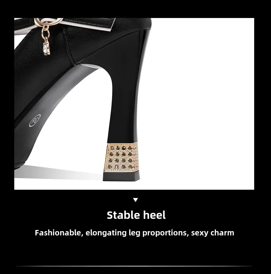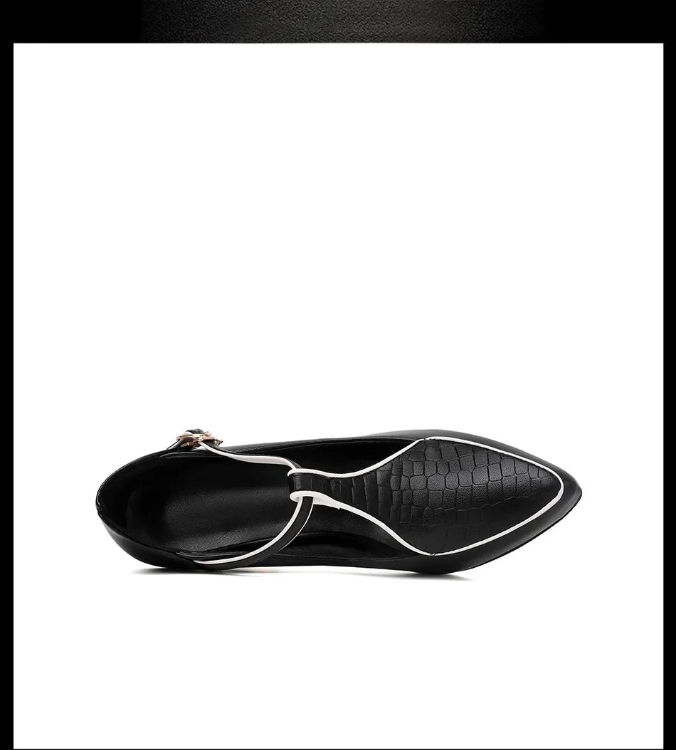 2024 Spring Vintage Fashion Women's Pointed Toe Shallow Sole One-Piece Buckle Mary Sandals High Heels Polyurethane Leather