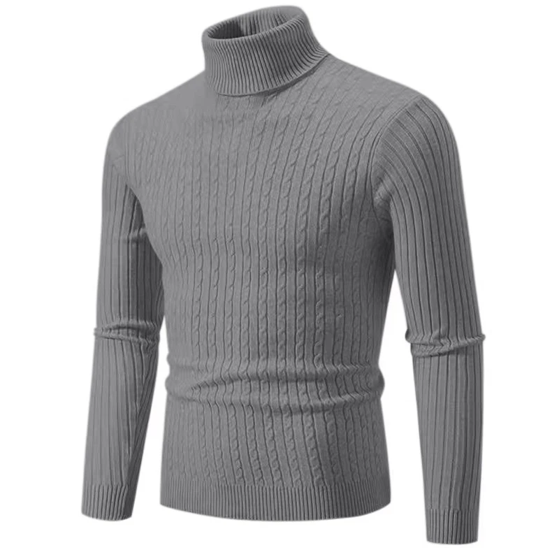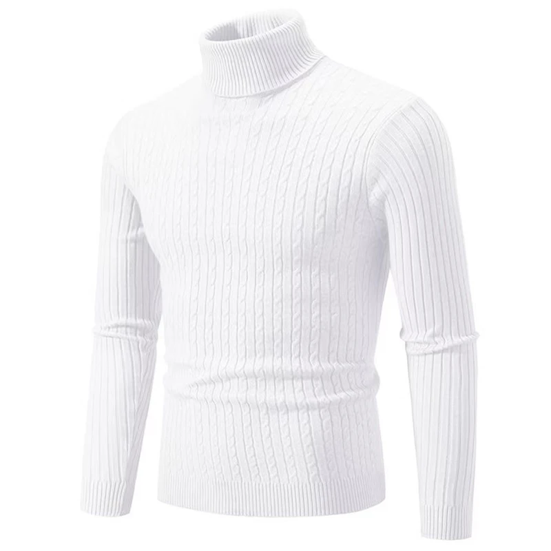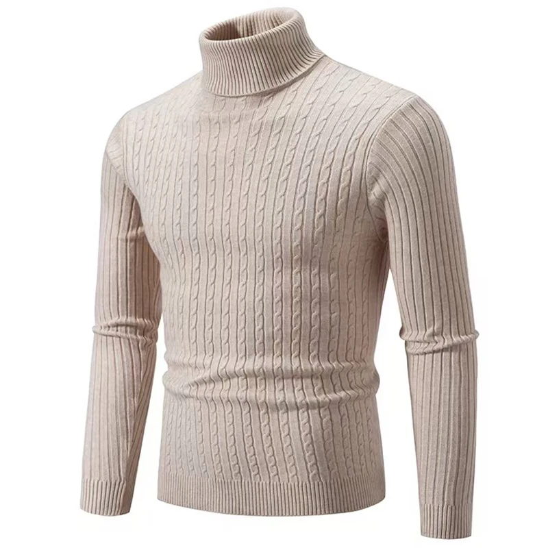 2025 New Men's High Neck Sweater Solid Color Pullover Knitted Warm Casual Turtleneck Sweatwear Woolen Mens Winter Outdoor Tops