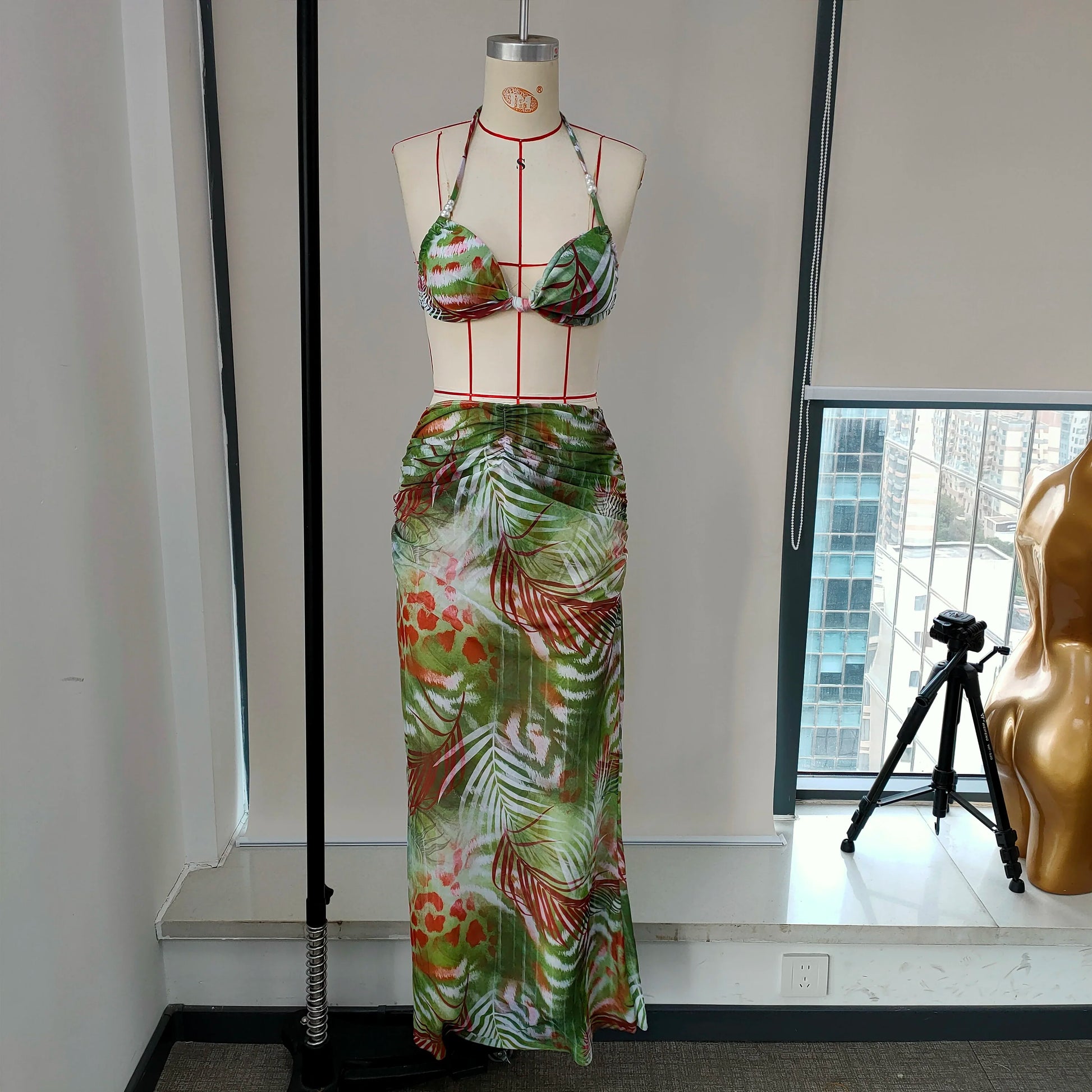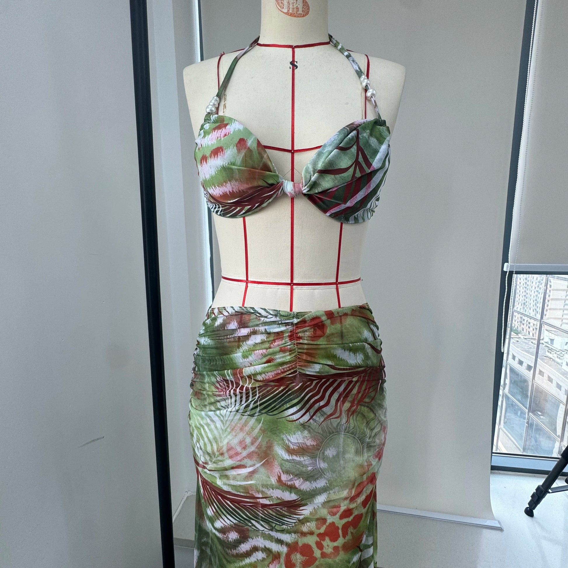 3 Pieces Bikinis 2025 Sexy Women Swimsuit Swimwear Female Mesh Micro Print Skirt Bikini Set Biquini Bathing Suit Swimming Suit