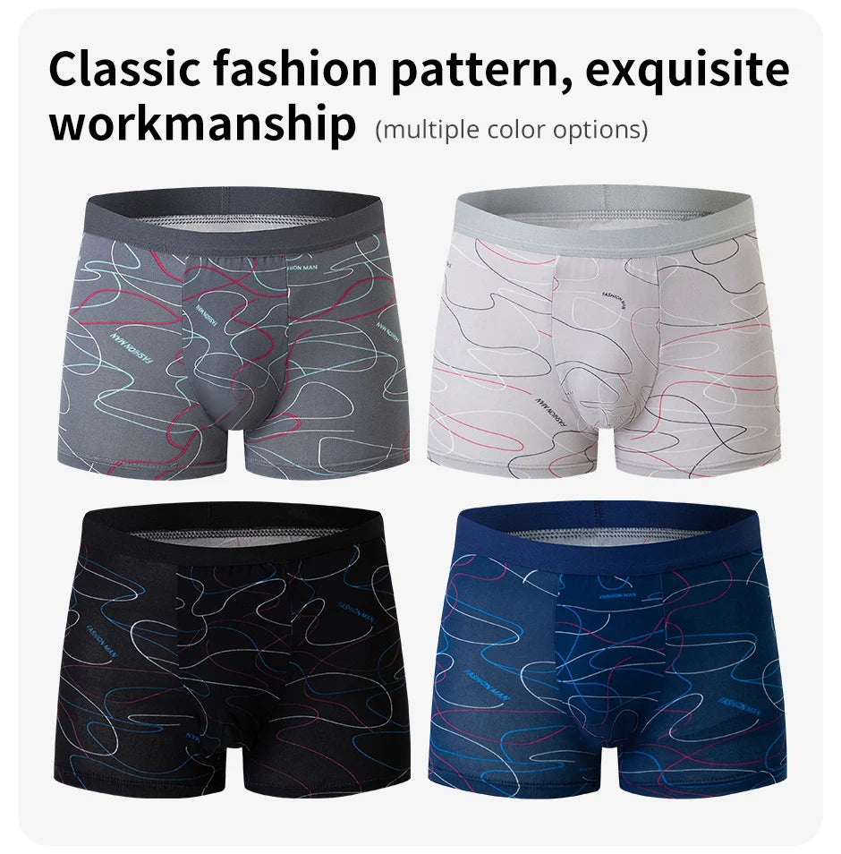4 Pack men's fashion printed underwear for leisure and comfort, plus size underwear for teenagers, swimming trunks max 5XL.6XL