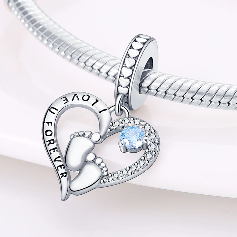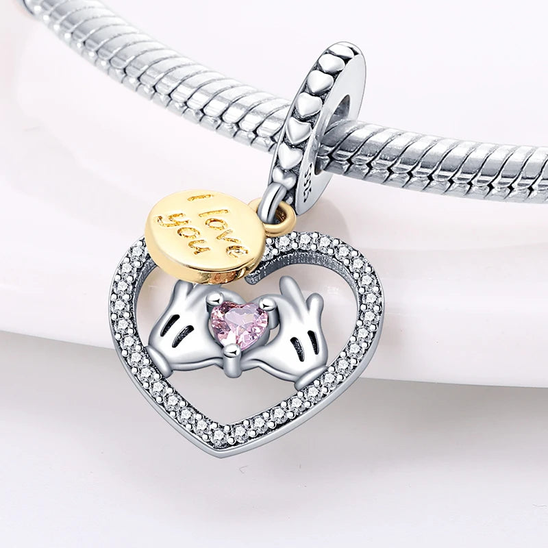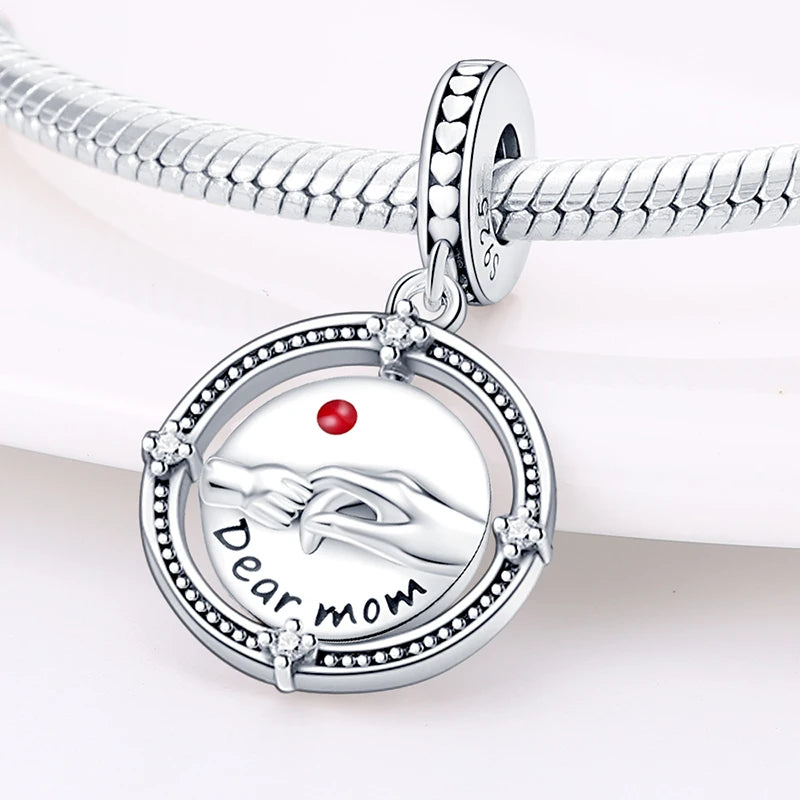 925 Sterling Silver Classic Mom and Daughter Heart Shaped Charms Pendants Fit Pandach Original Bracelet DIY Mother's Day Jewelry