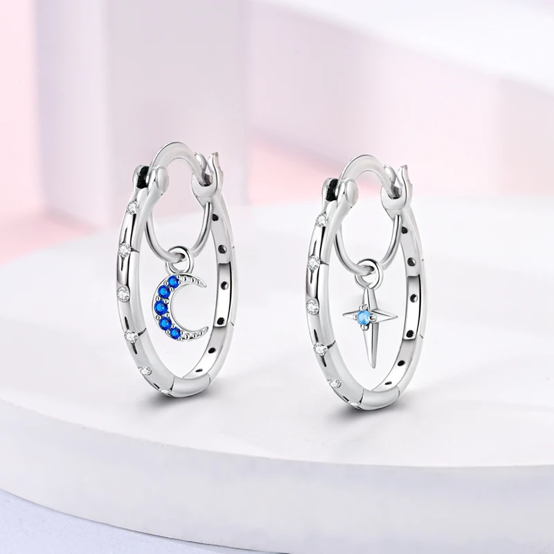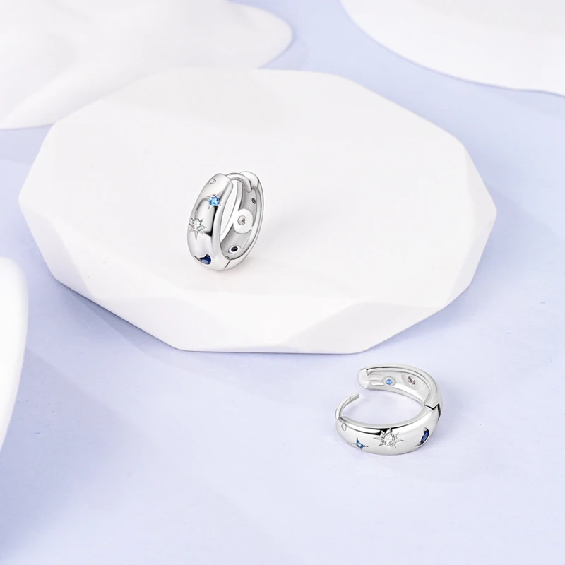 925 Sterling Silver Colored Zirconium Stars Hoop Earrings For Women Jewelry Anniversary WeddingMaking Jewelry Gift