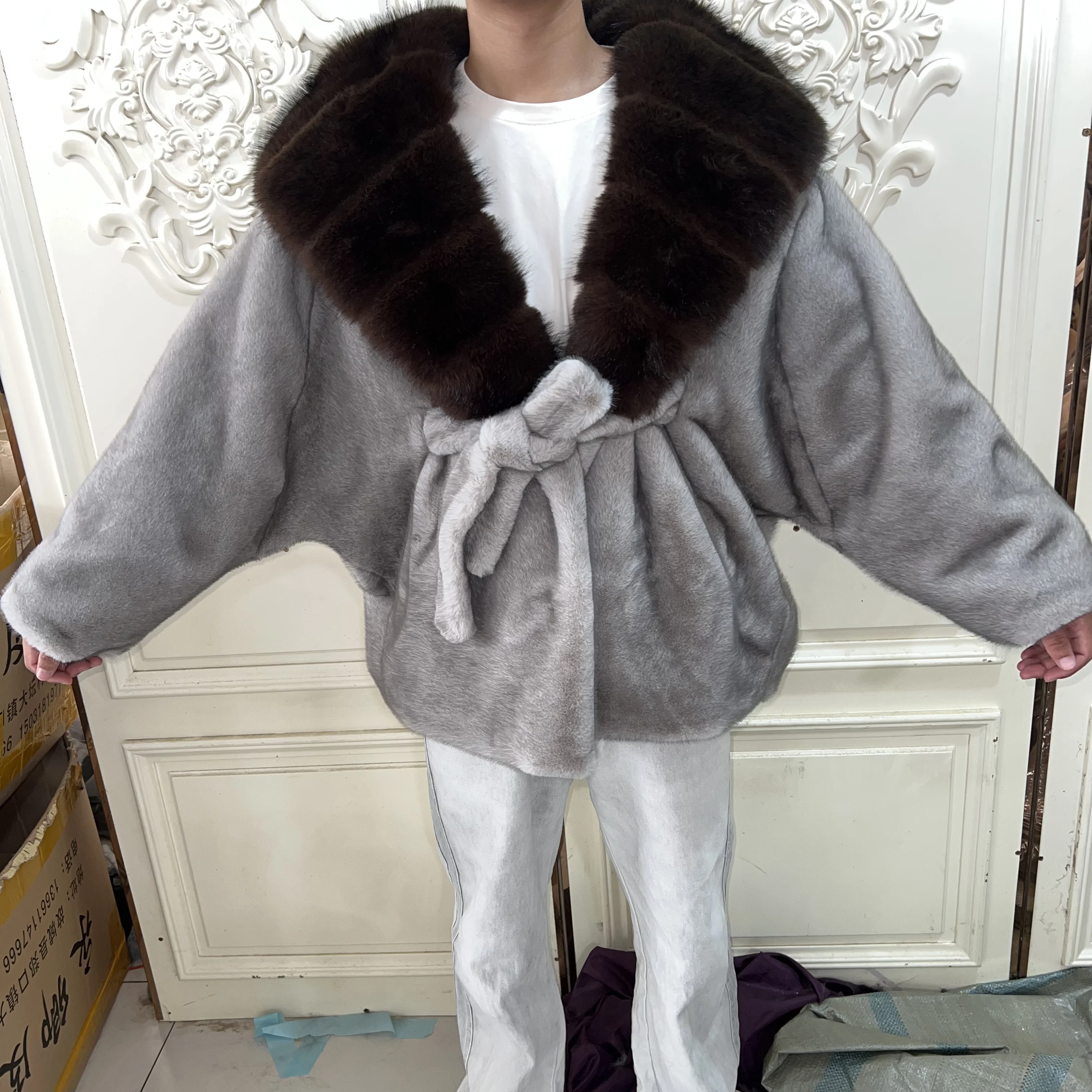 Artificial Imitation Mink Fur Fashionable Korean Style Loose Women's Hat Jacket Fur Coat