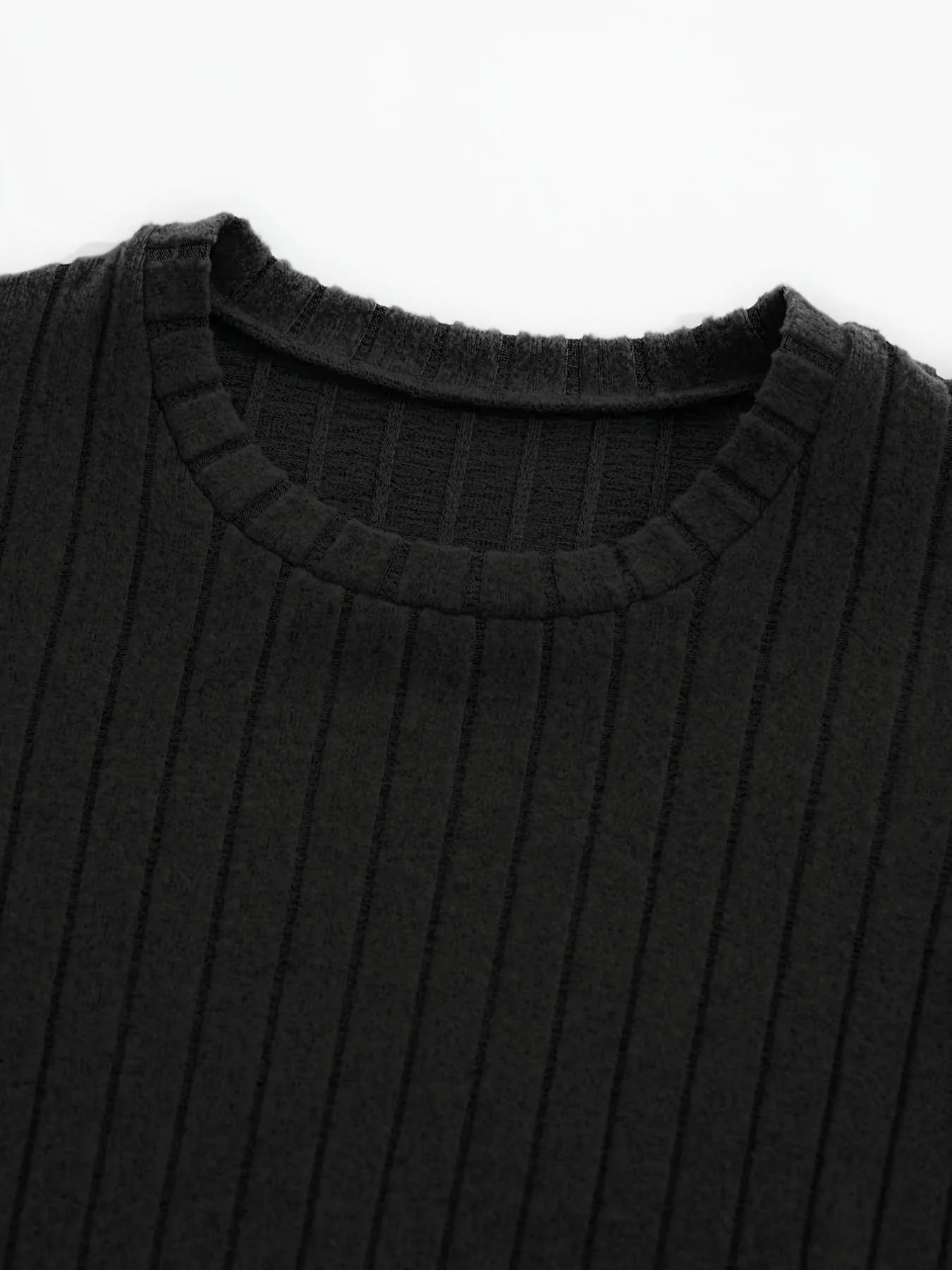 1. The contrasting color scheme creates a strong visual sense of layering. 2. The loose fit is well-suited to any body type, and the long sleeves provide both warmth and arm contours. 3. The knitted fabric is soft and skin-friendly, and the pleated skirt adds a touch of movement and elegance. 4. The overall design is elegant and sleek, making it suitable for everyday wear or casual occasions.