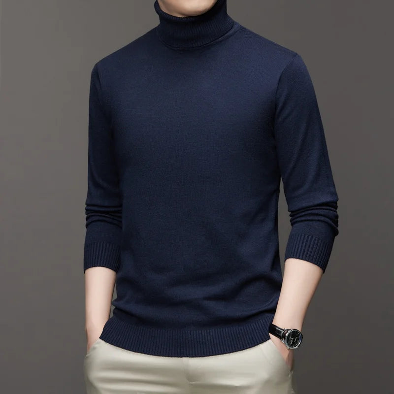 Autumn Mens High Quality Knitted Turtleneck Sweater Slim Fit Long Sleeve Anti-pilling Pullover Solid Color Trend Men Streetwea
