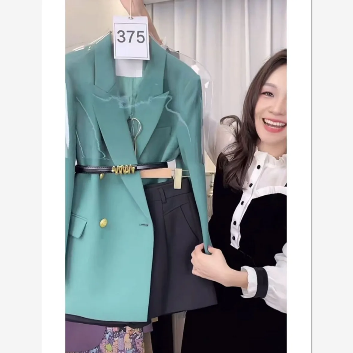 Autumn New Elegant Office Lady Suit Women Formal Outfits Notched Blazer Jacket with Belt + High Waist Shorts 2 Piece Set 651P