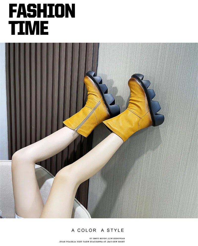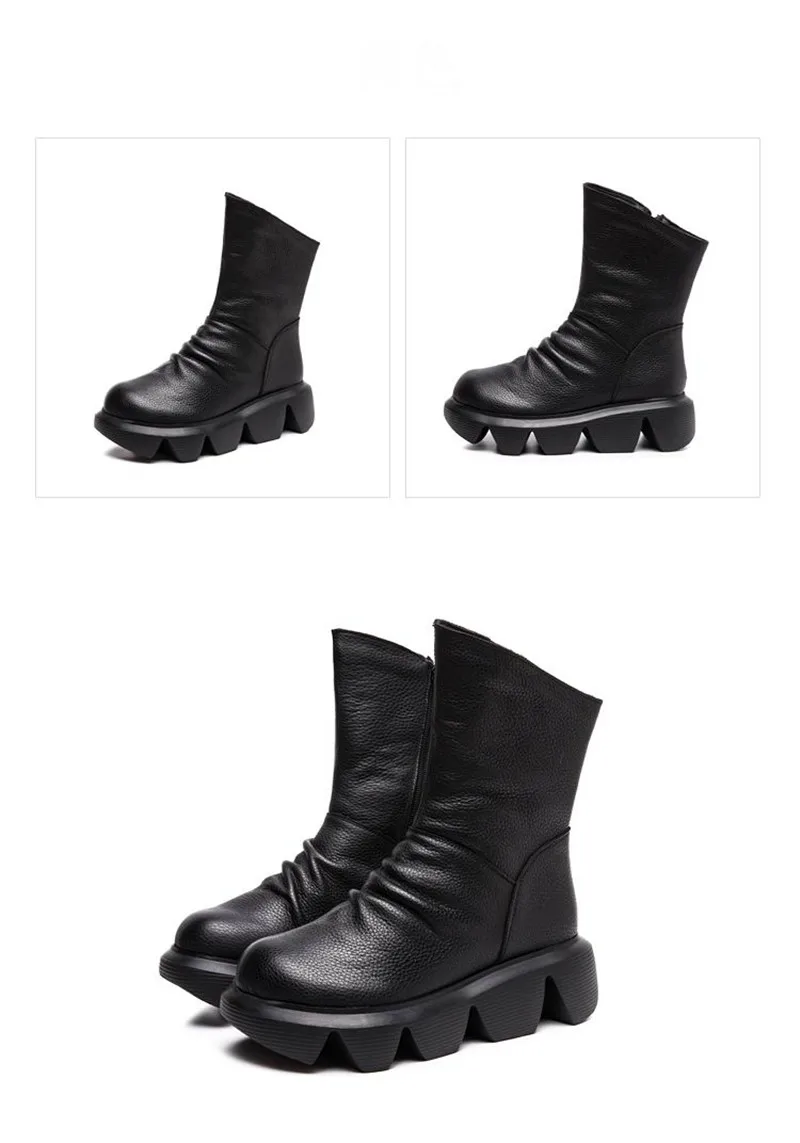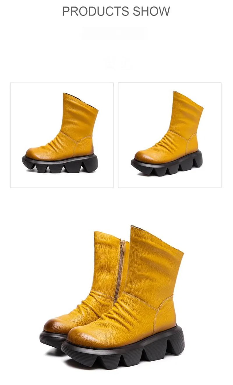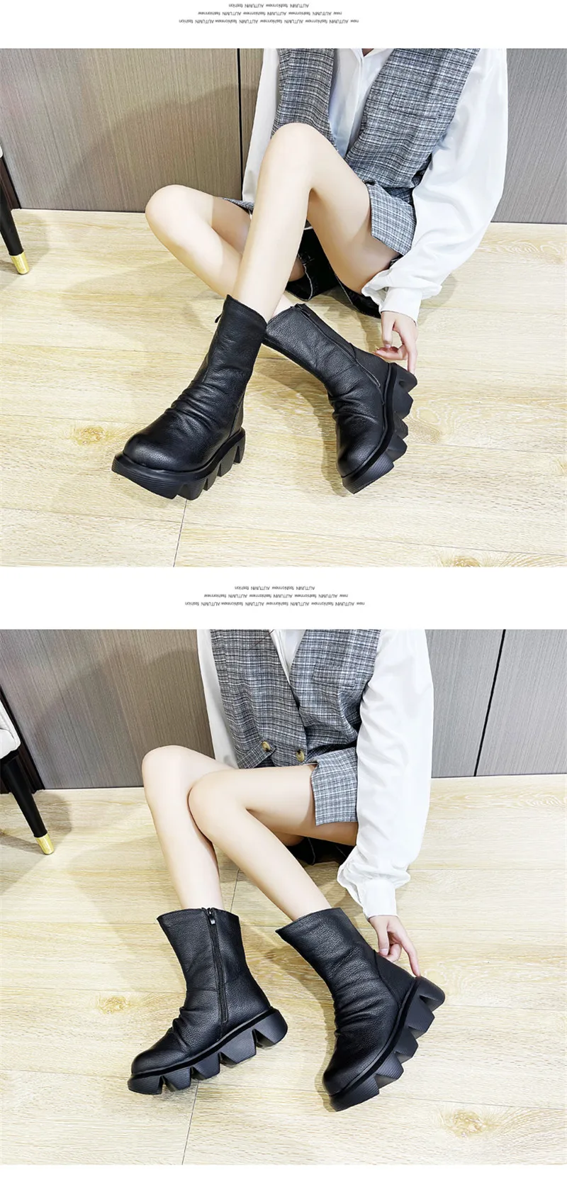 BEYARNE Ankle Boots Women Genuine Cow Leather Platform Bootie Side Zipper Soft Comfortable Autumn Winter Ladies Shoes Handmade