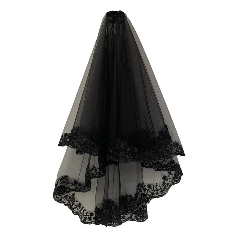 Black Lace Veil Creative Cathedral Wedding Halloween Veil With Comb