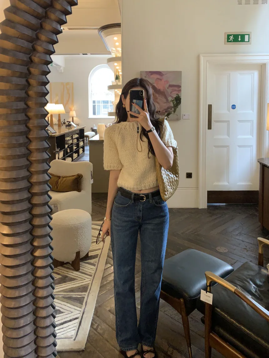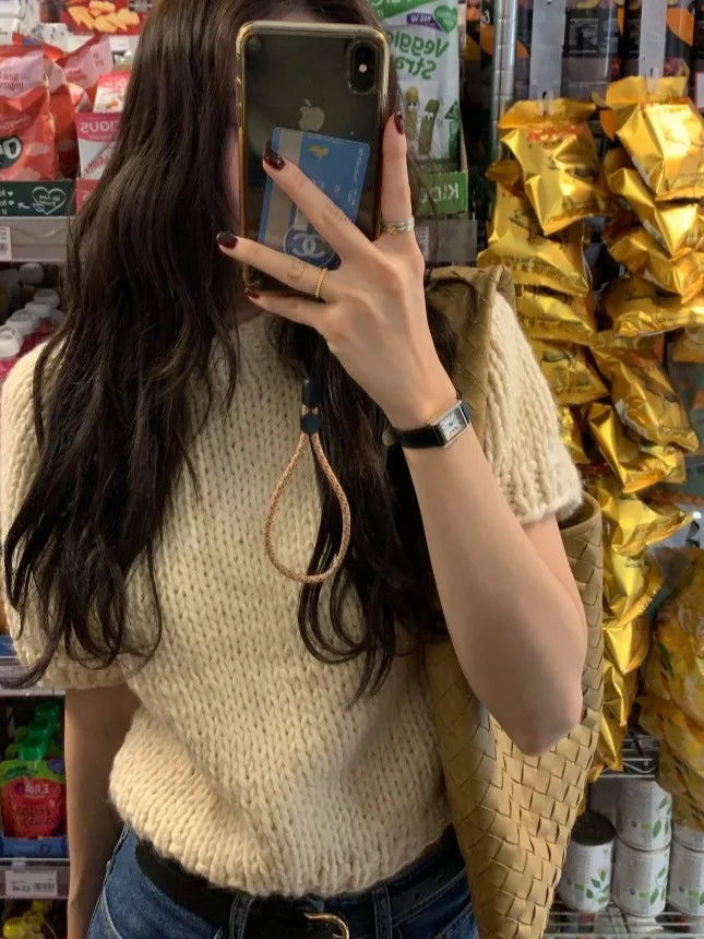 Embrace retro charm with this Korean chic knit sweater, perfect for adding a vintage touch to your autumn wardrobe.