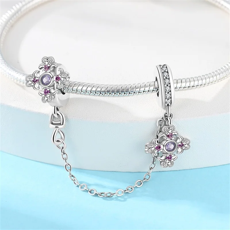 Classic Silver Plated Lotus Guardian Angel Heart-Shaped Zircon Charms Beads Fit Qikaola 925 Original Bracelets DIY Jewelry Gifts