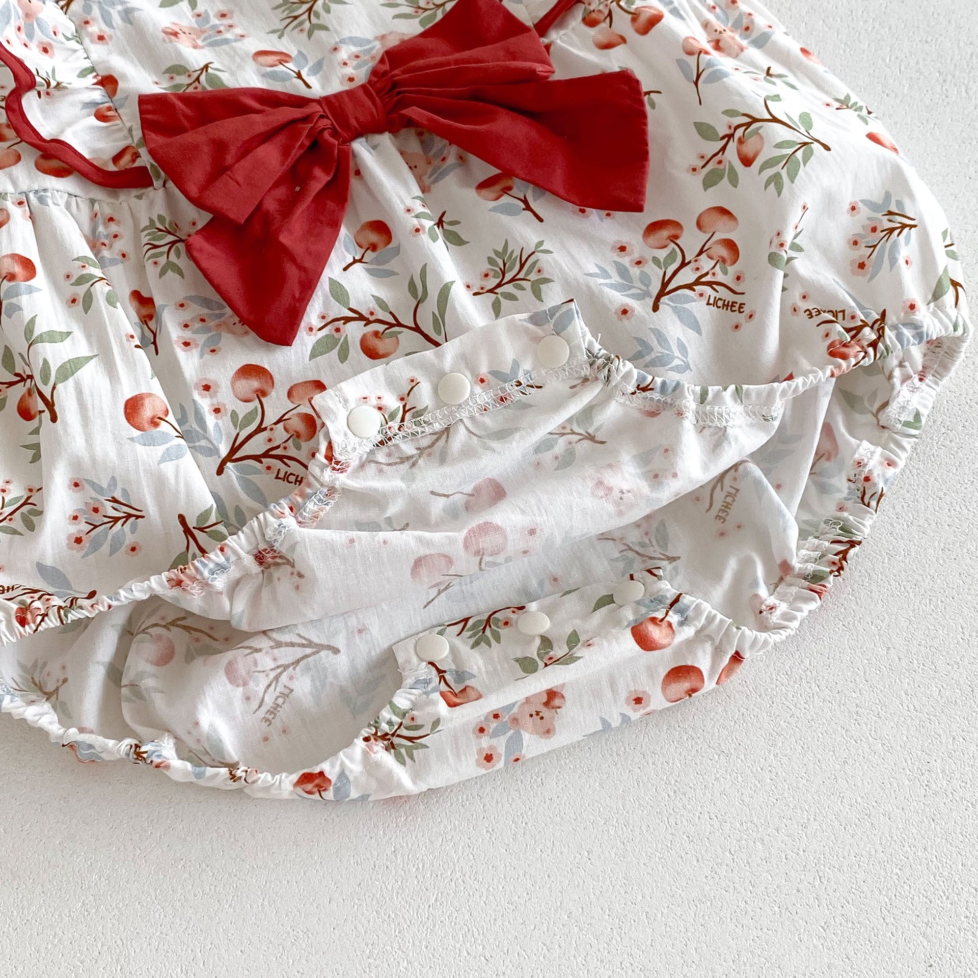 Design Summer Baby Kids Girls Cherry Pattern Square Neck Sleeveless Big Bow Onesies