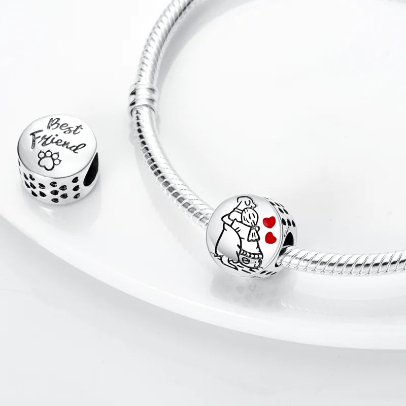 Dogs Pet Charms 925 Silver Heart Shaped Pink Zircon Claws Pendants Fit Original S925 Bracelets Fine DIY Birthday Jewelry Gifts