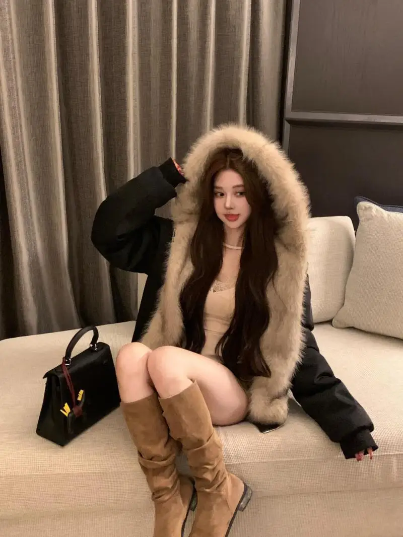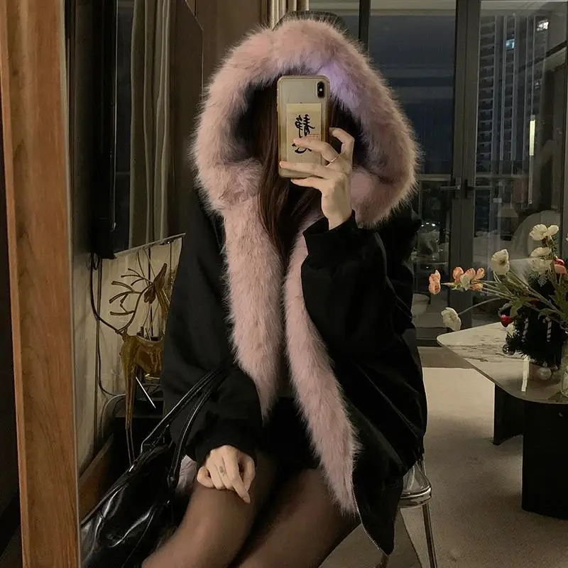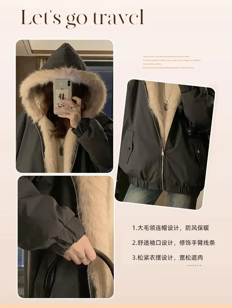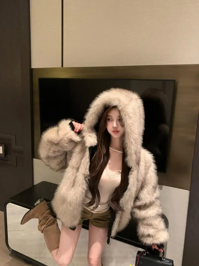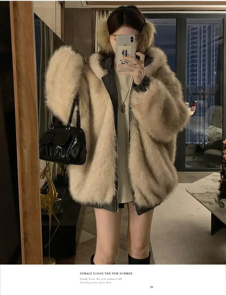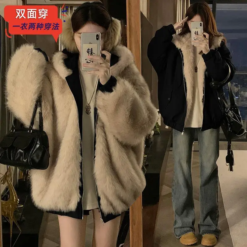 Double-Sided Warm Fur Coat Women Autumn Winter Loose Thicken Plush Cotton Coat 2025 New Women Hooded Imitation Mink Fur Outwear
