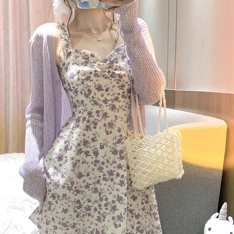 Dresses Woman Summer 2022 Party Sleeveless Y2k Sling Sexy Casual Aesthetic Floral Print Midi High Waist Harajuku Female Clothing