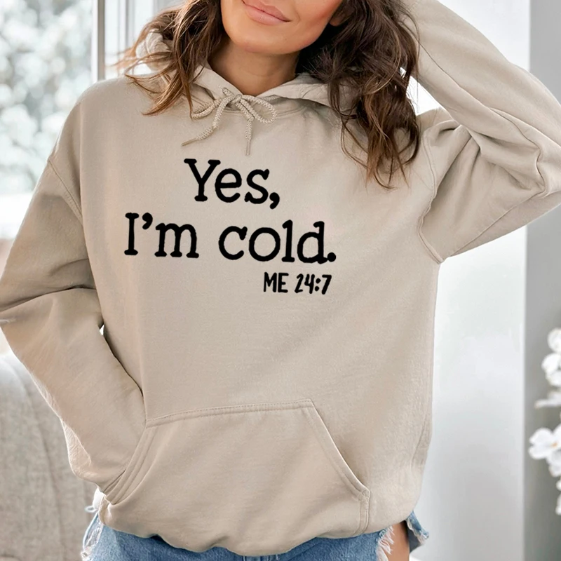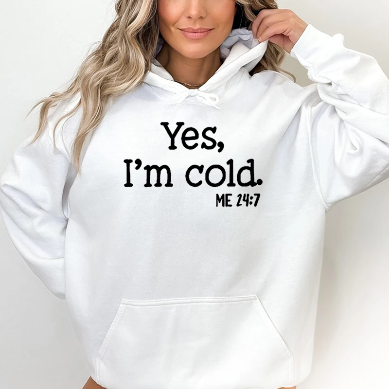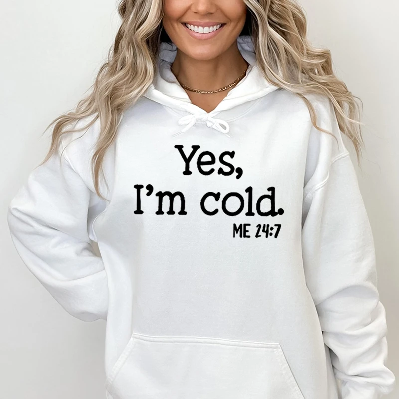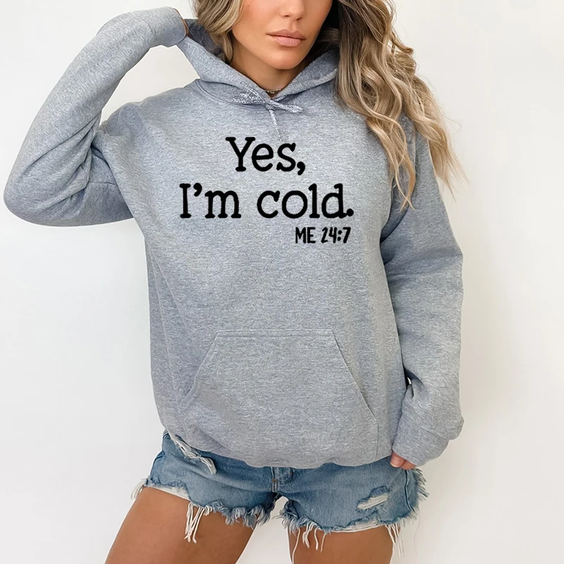 Fashion Yes I'm Cold Style Hoodies Pullovers Women Print Casual Sport Outdoor Long Sleeves Hooded Sweatshirts Pure Color Hoodies