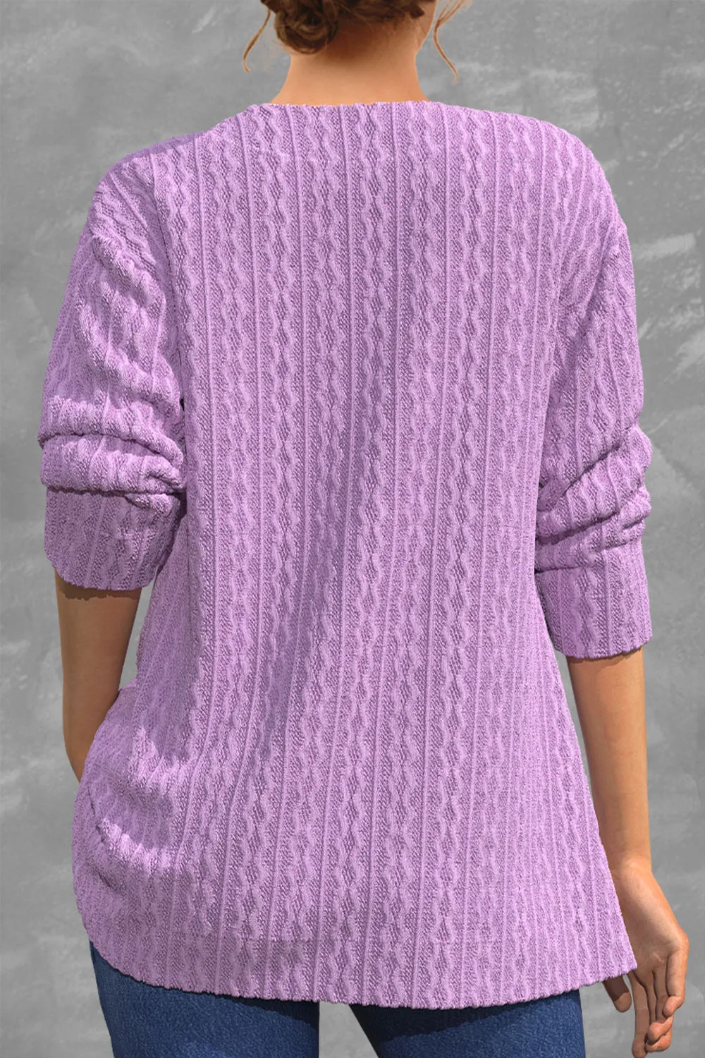Flycurvy Plus Size Women's Casual Purple Knitted Cardigan Single-Breasted Sweater Comfortable Loose Fit