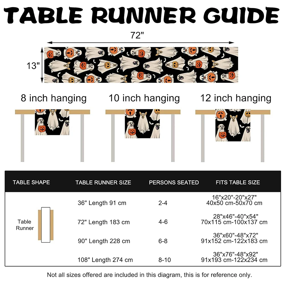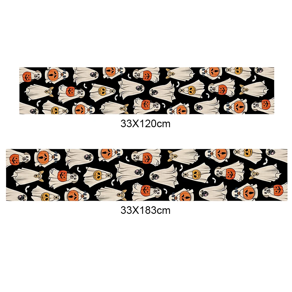Halloween Spooky Ghost Dog Table Runner Kitchen Dining Table Decoration Ghost Pumpkin Desk Decor Indoor Outdoor Home Party Decor