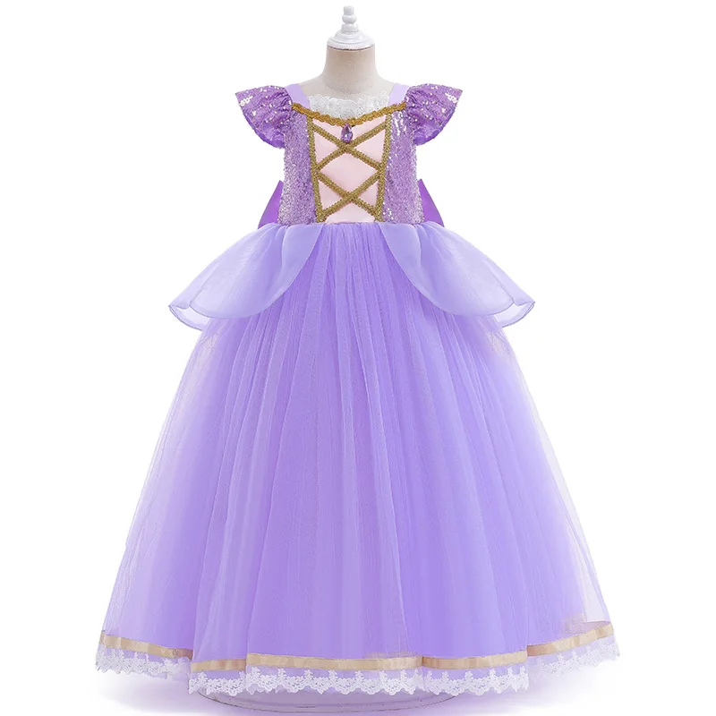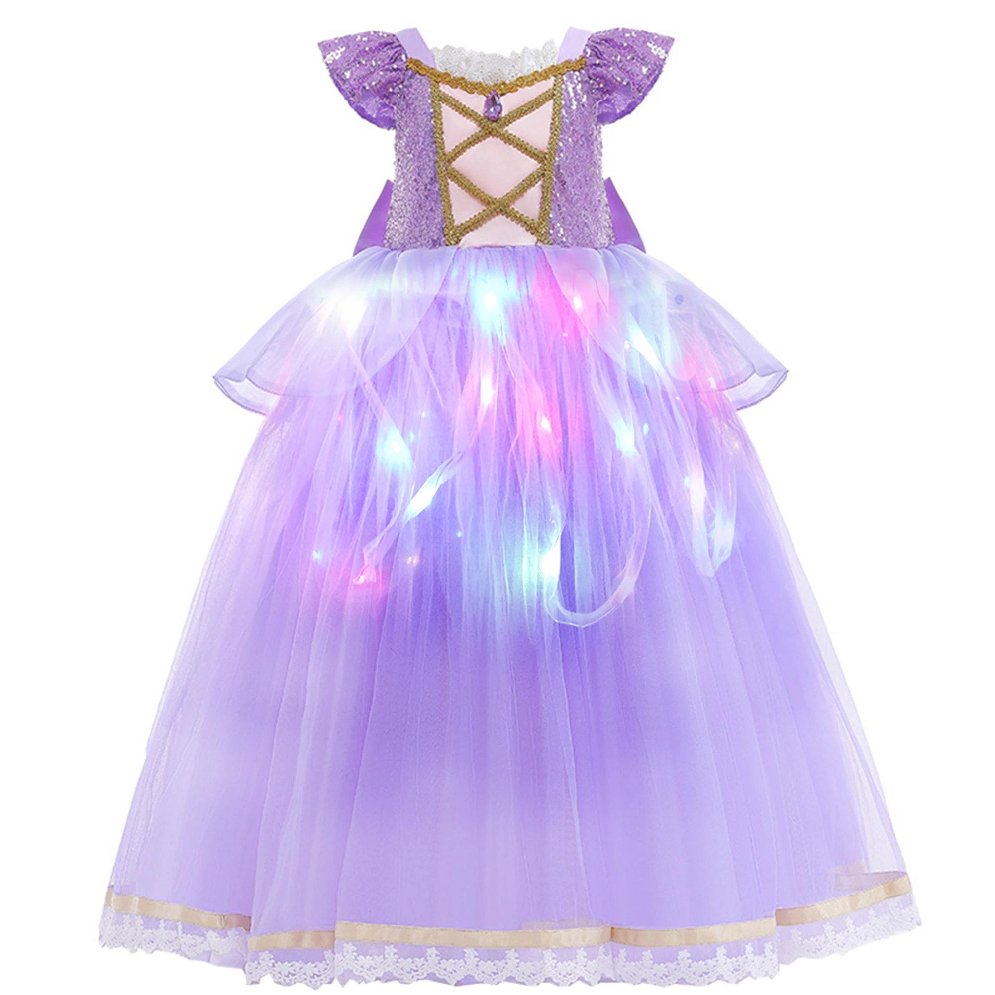 Girls Princess Costume Purple Rapunzel LED Light Up 2PCS Dress Fancy Birthday Carnival Party Elegant Children Clothing Halloween