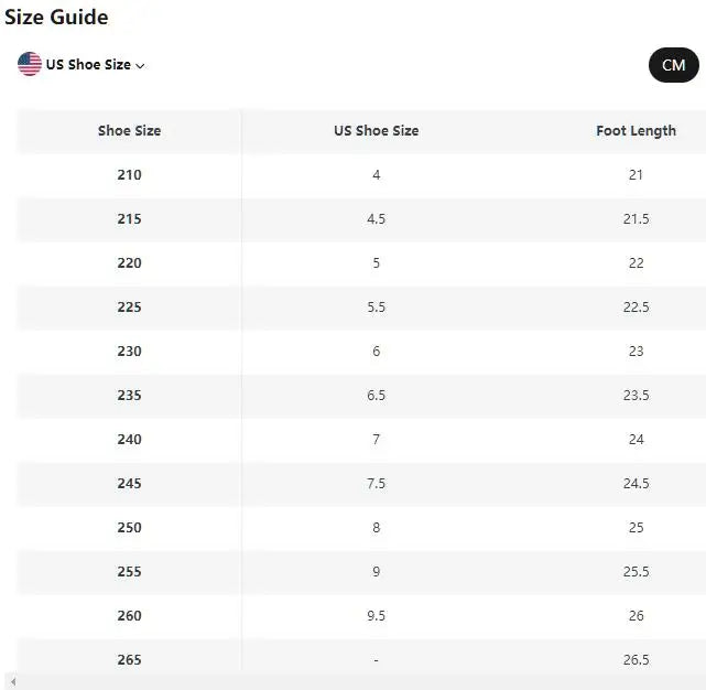 size_info: {"sizeInfoList":[{"countrySizeMap":{"EU":"33","BR":"32","JP":"20.5","UK":"1.5","KR":"210","MX":"21.5","US":"4"},"length":{"cm":"21","inch":"8.27"},"size":"210","vid":200041124},{"countrySizeMap":{"EU":"33.5","BR":"33","JP":"21","UK":"2","KR":"215","MX":"22","US":"4.5"},"length":{"cm":"21.5","inch":"8.46"},"size":"215","vid":200011609},{"countrySizeMap":{"EU":"35","BR":"33","JP":"22","UK":"2.5","KR":"225","MX":"22.5","US":"5"},"length":{"cm":"22","inch":"8.66"},"size":"220","vid":200044697},{"countrySizeMap":{"EU":"35.5","BR":"33.5","JP":"22.5","UK":"3","KR":"230","MX":"23","US":"5.5"},"length":{"cm":"22.5","inch":"8.86"},"size":"225","vid":200044654},{"countrySizeMap":{"EU":"36","BR":"34.5","JP":"23","UK":"3.5","KR":"235","MX":"23.5","US":"6"},"length":{"cm":"23","inch":"9.06"},"size":"230","vid":200044768},{"countrySizeMap":{"EU":"37","BR":"35","JP":"23.5","UK":"4","KR":"240","MX":"24","US":"6.5"},"length":{"cm":"23.5","inch":"9.25"},"size":"235","vid":200044545},{"countrySizeMap":{"EU":"38","BR":"36","JP":"24","UK":"5","KR":"245","MX":"24.5","US":"7"},"length":{"cm":"24","inch":"9.45"},"size":"240","vid":100010977},{"countrySizeMap":{"EU":"38.5","BR":"36.5","JP":"24.5","UK":"5.5","KR":"250","MX":"25","US":"7.5"},"length":{"cm":"24.5","inch":"9.65"},"size":"245","vid":200041881},{"countrySizeMap":{"EU":"39","BR":"37.5","JP":"25","UK":"6","KR":"255","MX":"25.5","US":"8"},"length":{"cm":"25","inch":"9.84"},"size":"250","vid":200004064},{"countrySizeMap":{"EU":"40","BR":"38","JP":"25.5","UK":"6.5","KR":"260","MX":"26","US":"9"},"length":{"cm":"25.5","inch":"10.04"},"size":"255","vid":200102795},{"countrySizeMap":{"EU":"40.5","BR":"38.5","JP":"26","UK":"7","KR":"265","MX":"26.5","US":"9.5"},"length":{"cm":"26","inch":"10.24"},"size":"260","vid":200062872},{"countrySizeMap":{"EU":"41.5","BR":"40","JP":"26.5","UK":"7.5","KR":"270","MX":"27","US":"10"},"length":{"cm":"26.5","inch":"10.43"},"size":"265","vid":200048359}]}