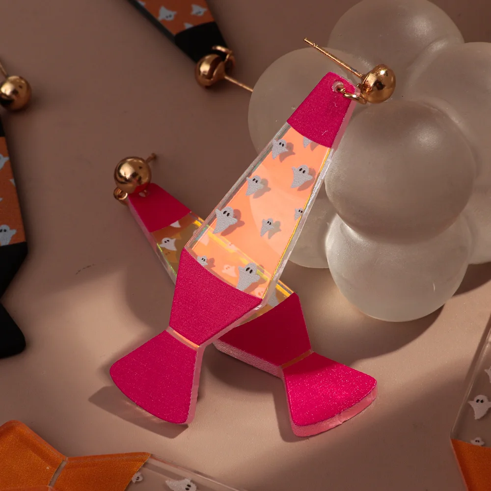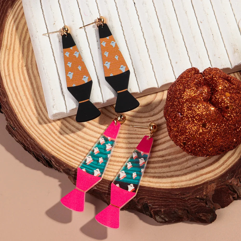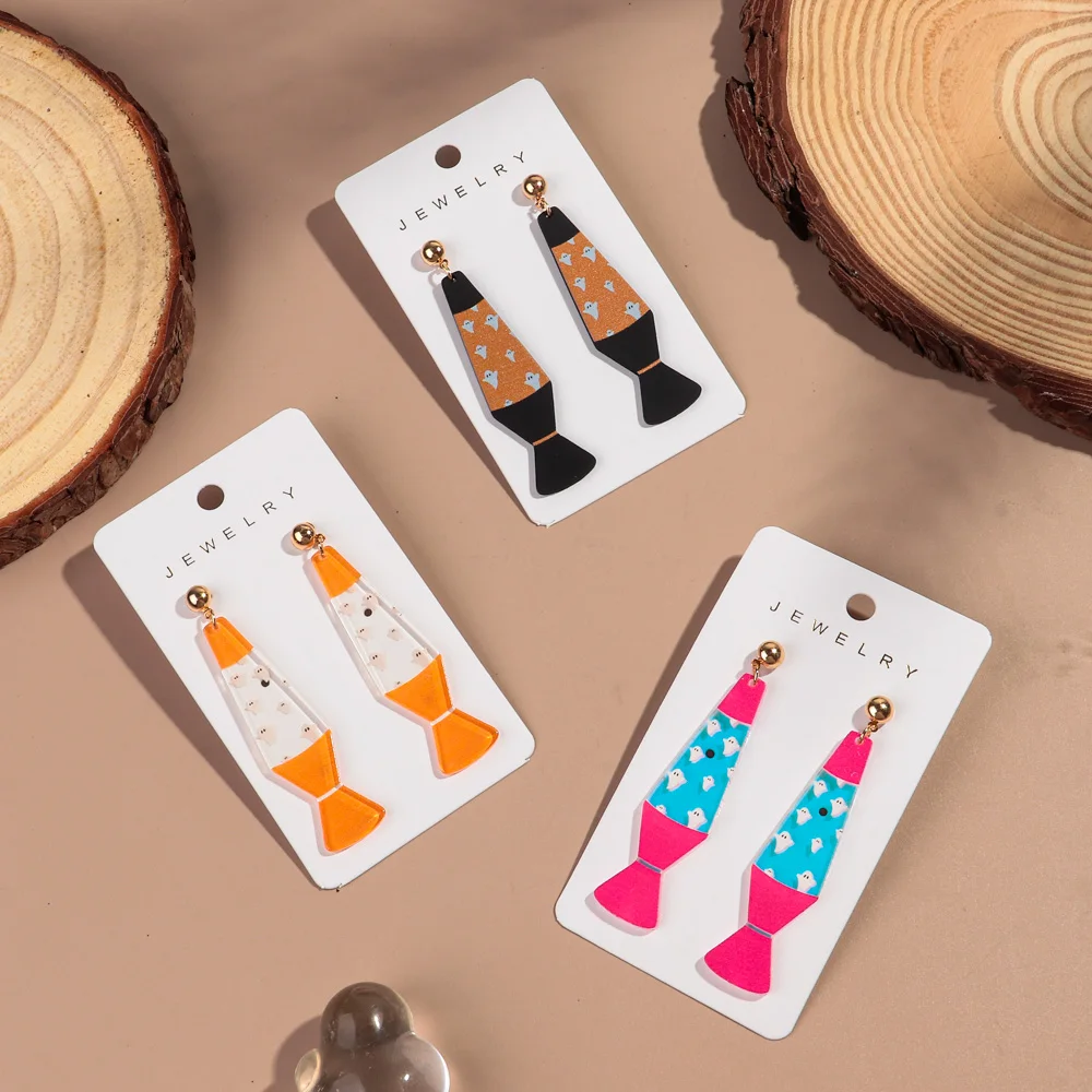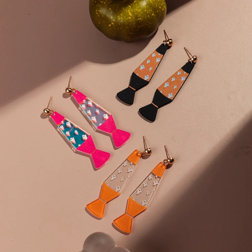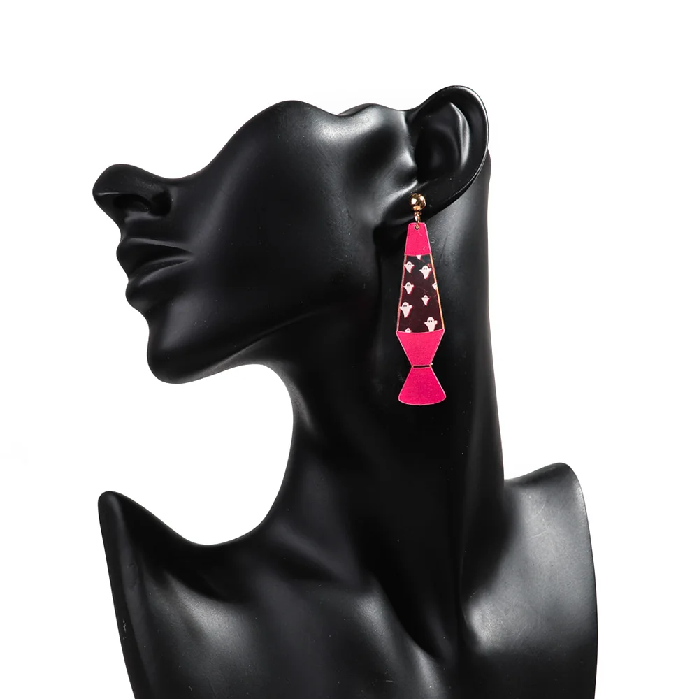 Halloween Day Acrylic Iridescent Colorful Lava lamp Earring for Women Cartoon Ghost Wave Point Drop Earrings 2024 Jewelry