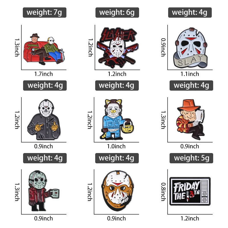 Halloween Horror Brooch Enamel Pins Custom Masked killer Brooches Lapel Badges Funny Jewelry Gift for Friends