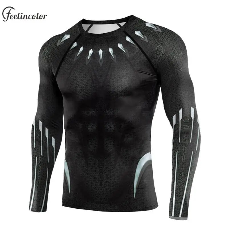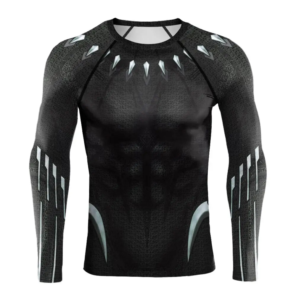 Halloween Superhero Cosplay T-Shirt for Men Panther Printed Long Sleeve Compression Shirt Breathable Male Outdoor Sportwear
