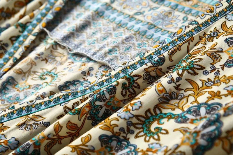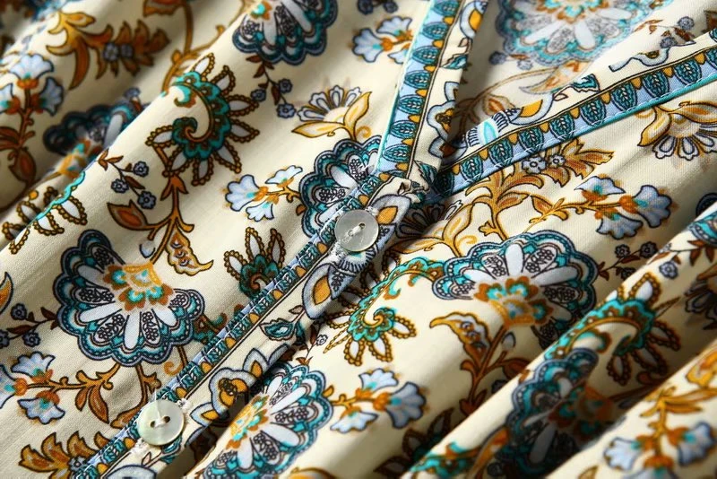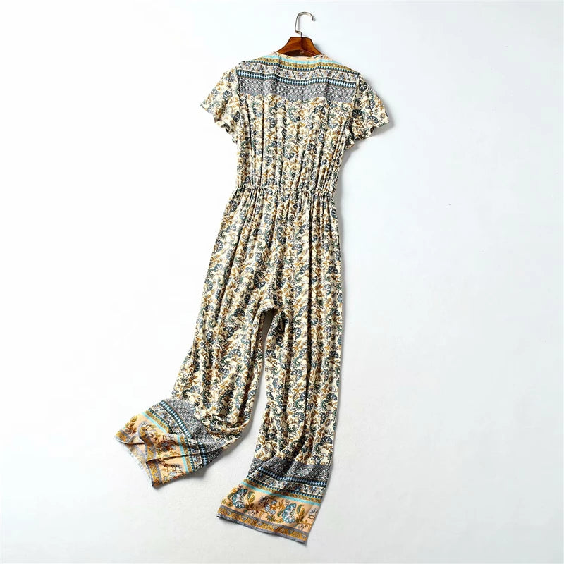 Happie Queens Women Floral Print Lace-up Boho Bodysuits with Pokctes Elastic Waist Short Sleeve Bohemian Rayon Playsuits Rompers
