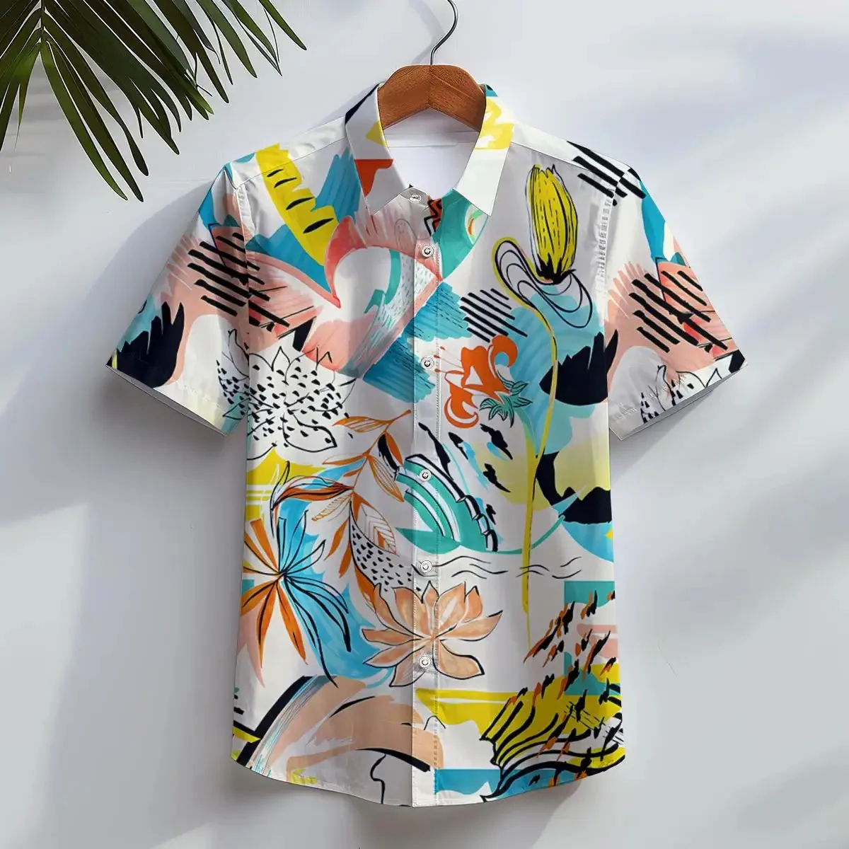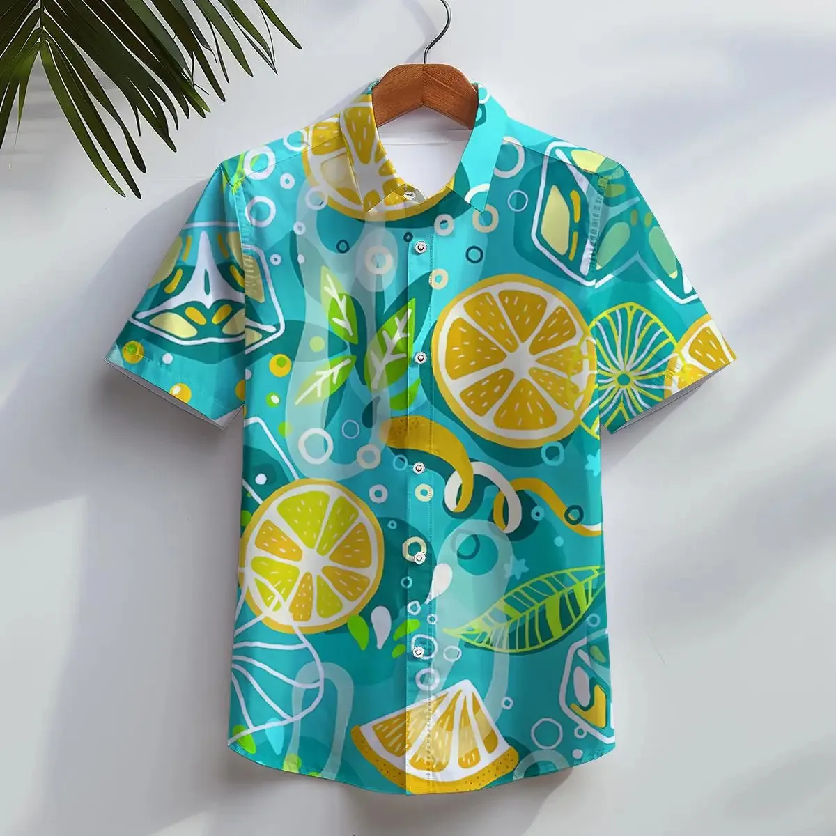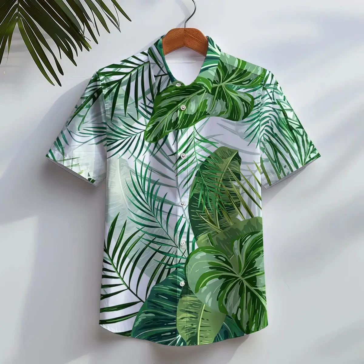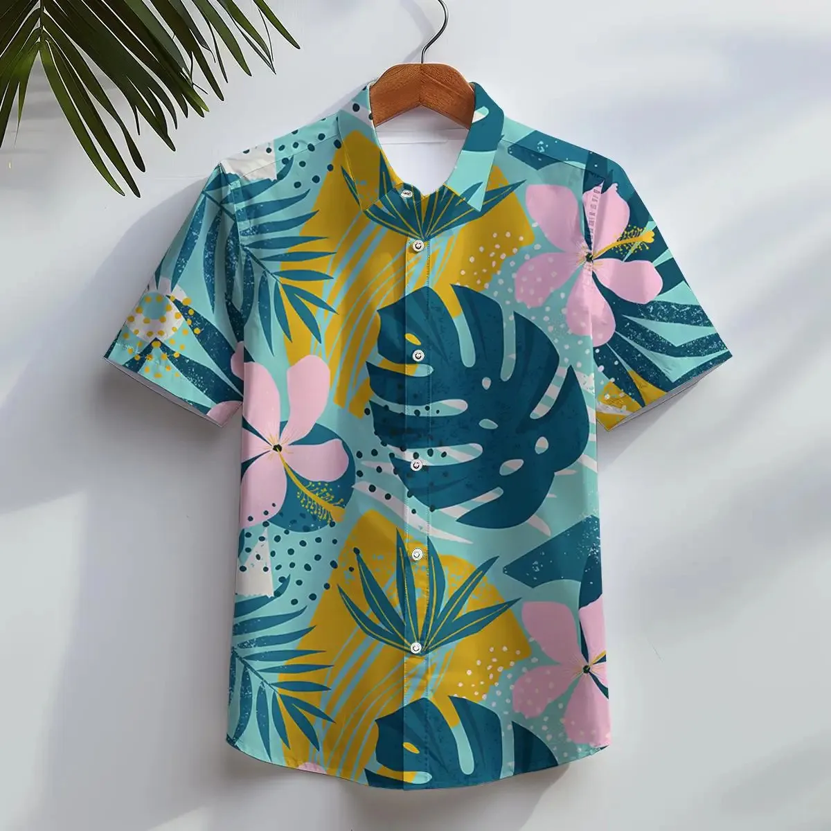 Hawaiian Shirt Children Beach Casual Short Sleeve Button Down Shirts Tropical Leaf Floral 3D Printed Clothing for Summer Vacatio