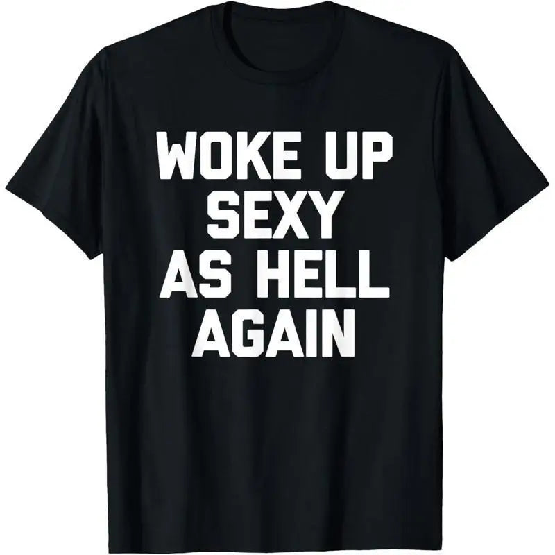 HOT SALE Woke Up Sexy As Hell Again Funny Memes Men T-shirt Women Soft and Comfortable Cotton Funny Saying Sarcastic T-Shirt