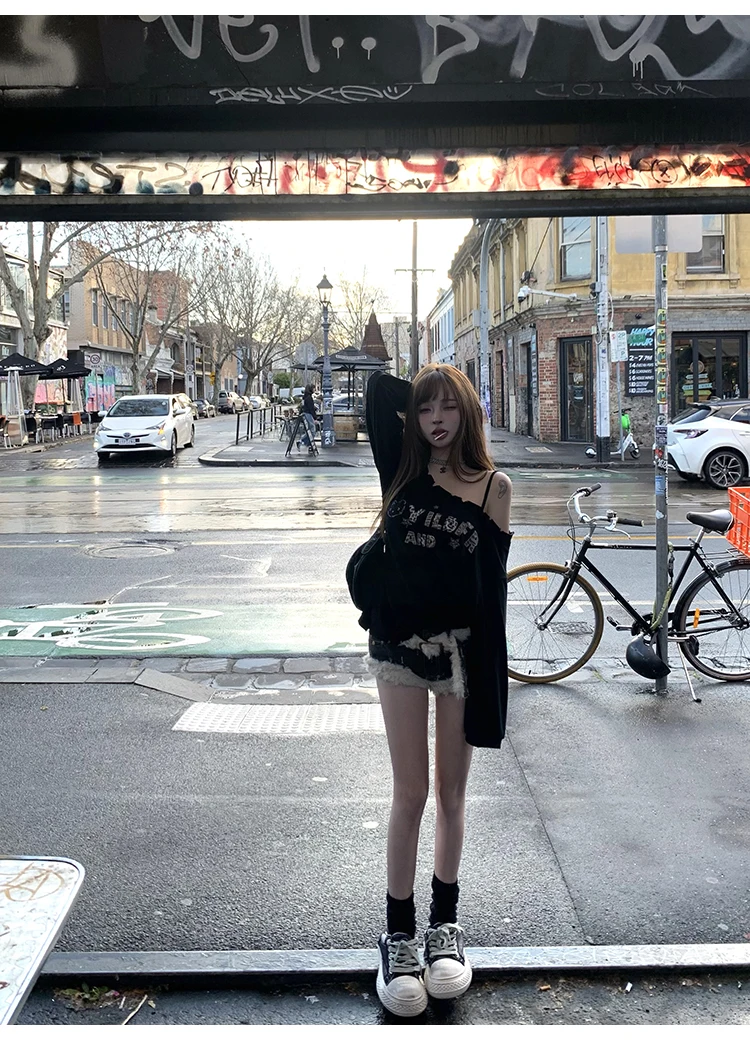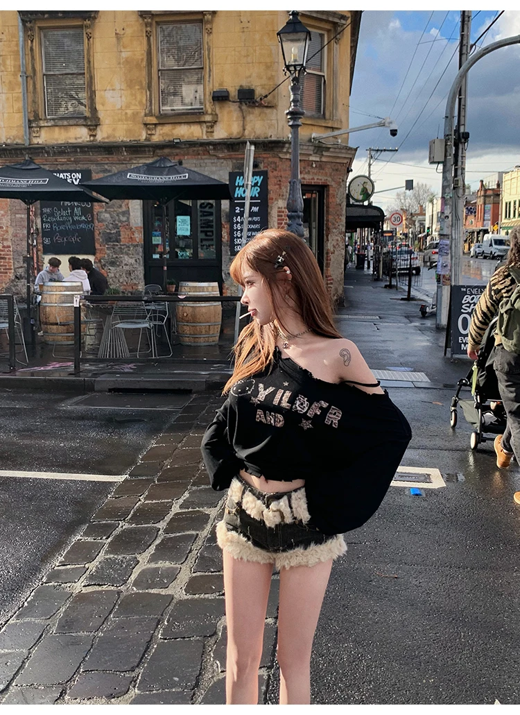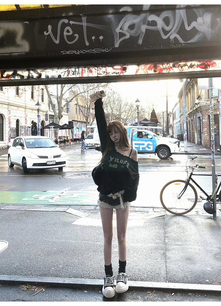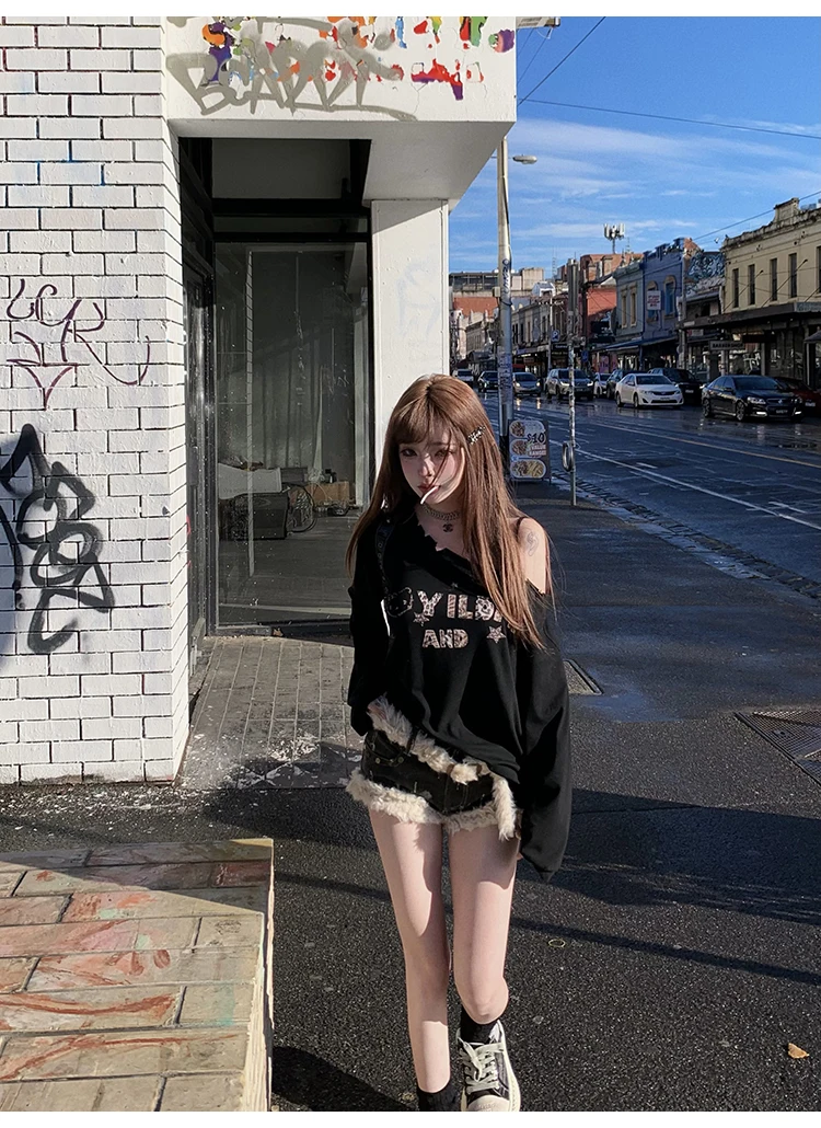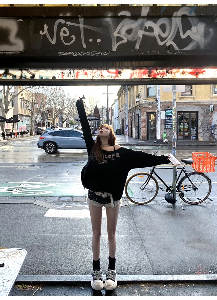 Hotsweet Graphic T Shirts Woman Clothes Long Sleeve Japanese 2000s Clothes Y2k Spring Tops Tees Female Clothing T-shirt Kawaii