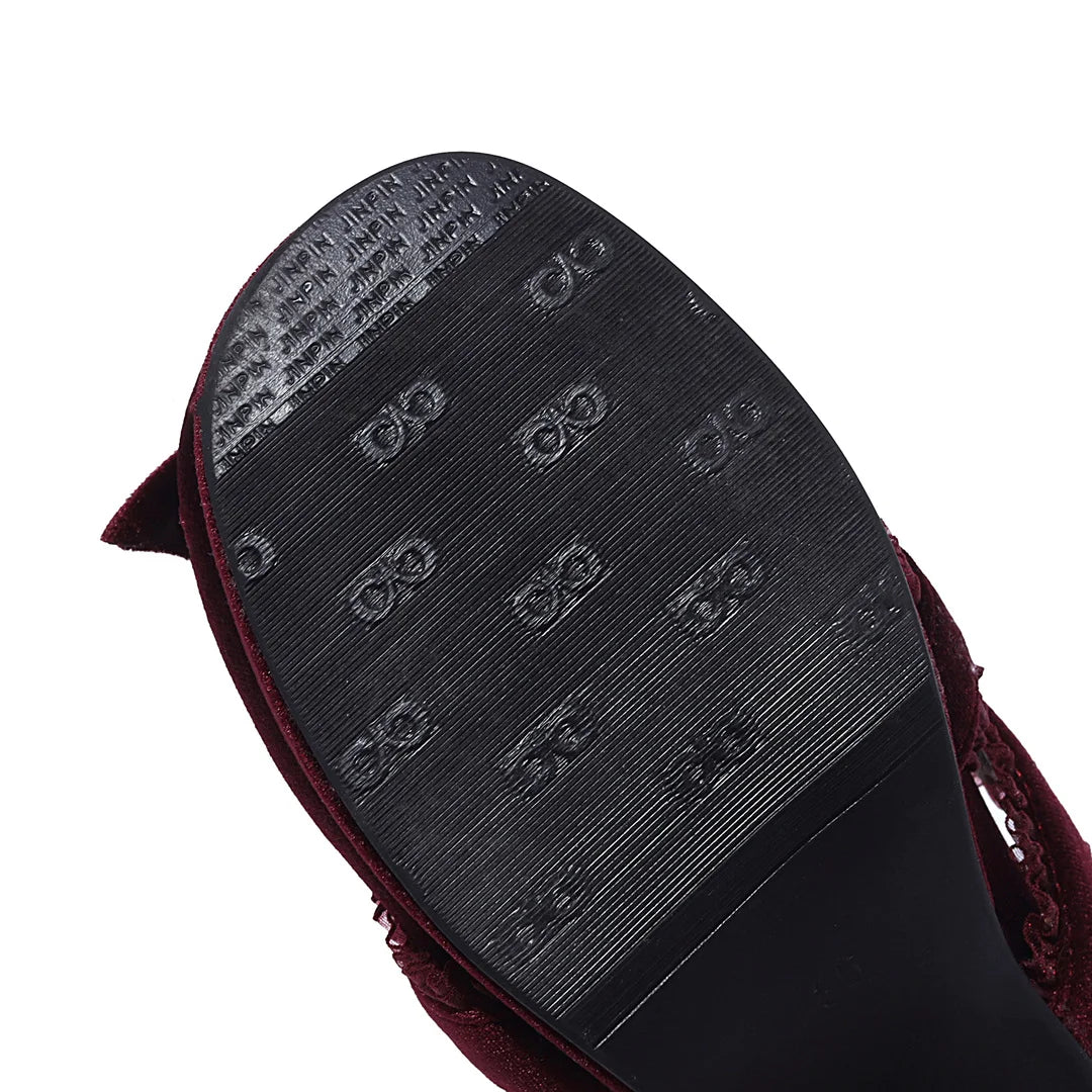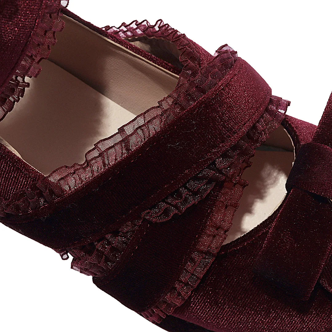 JK Fairy Lolita Shoes Flock Gold Velvet Cute Bow Mary Jane Cross Strap Pumps Gladiator Cosplay Party Red Green Black Size 34-43