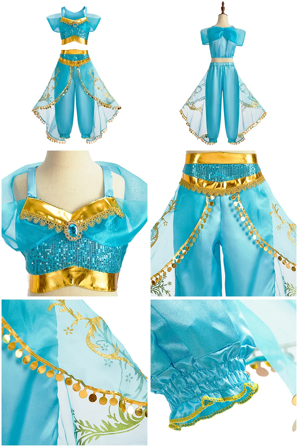 Name: Kids Jasmine Tops and Pants Children Summer Halloween Costume Girls Princess Carnival Dress Up Performance Kids Cosplay Dresses
