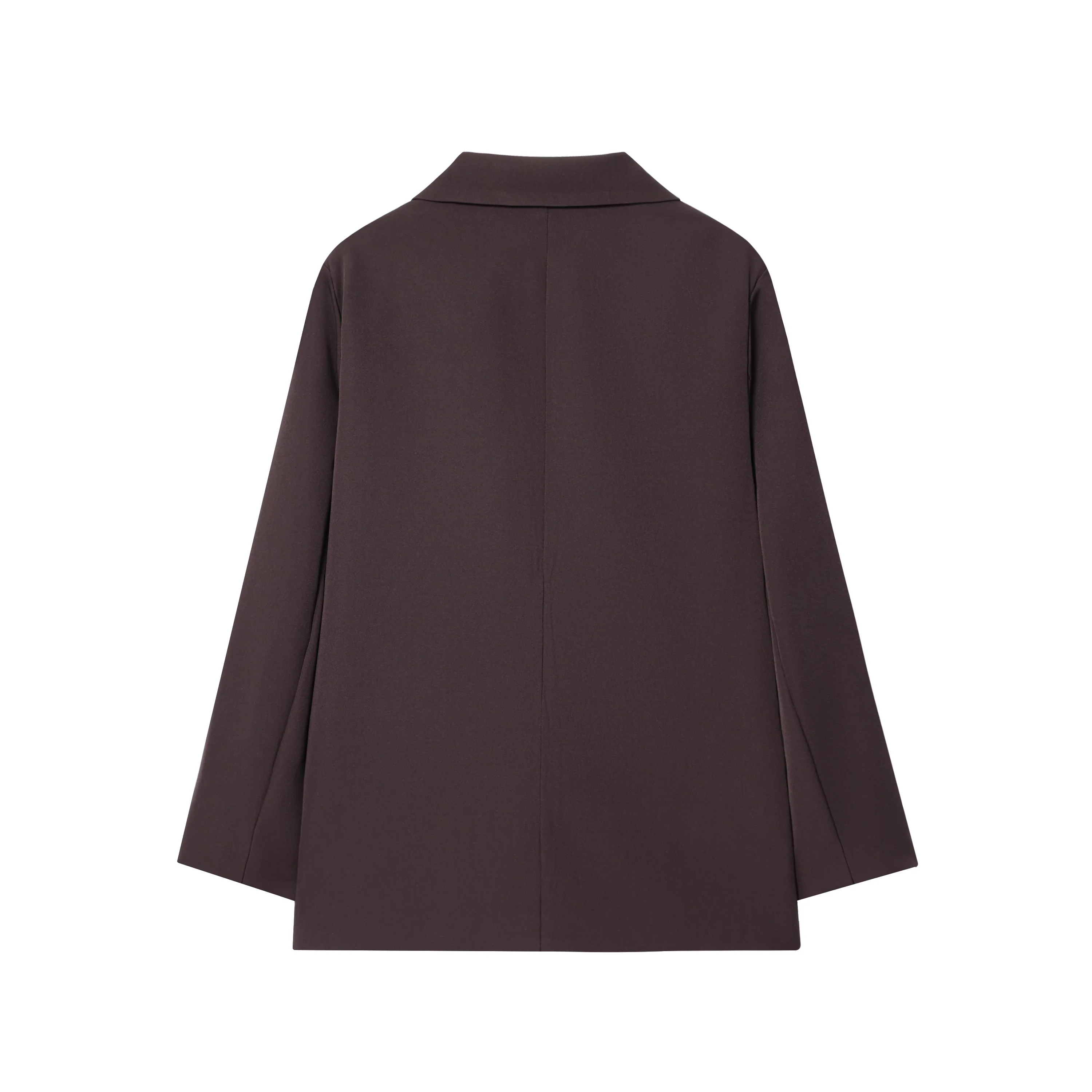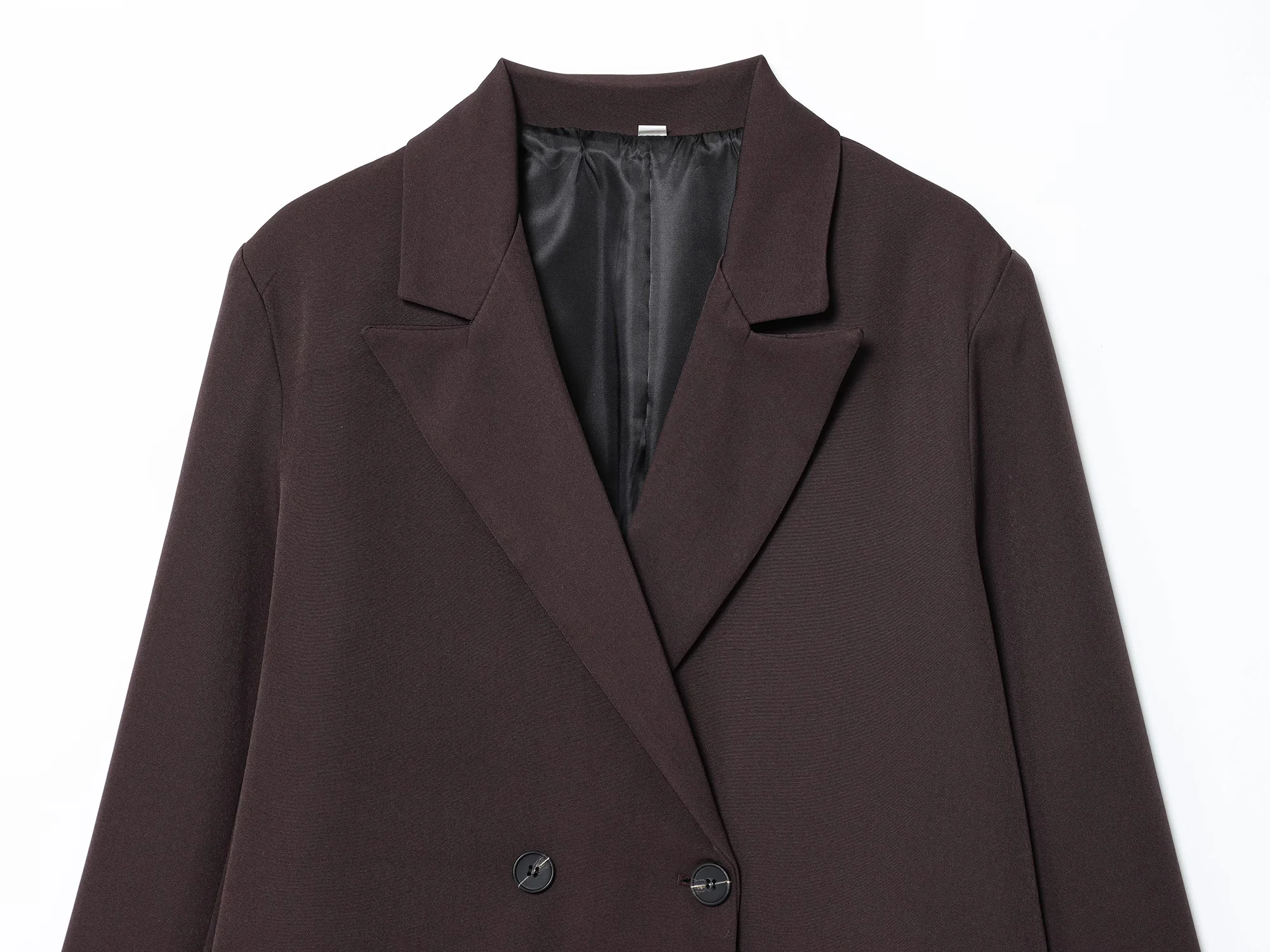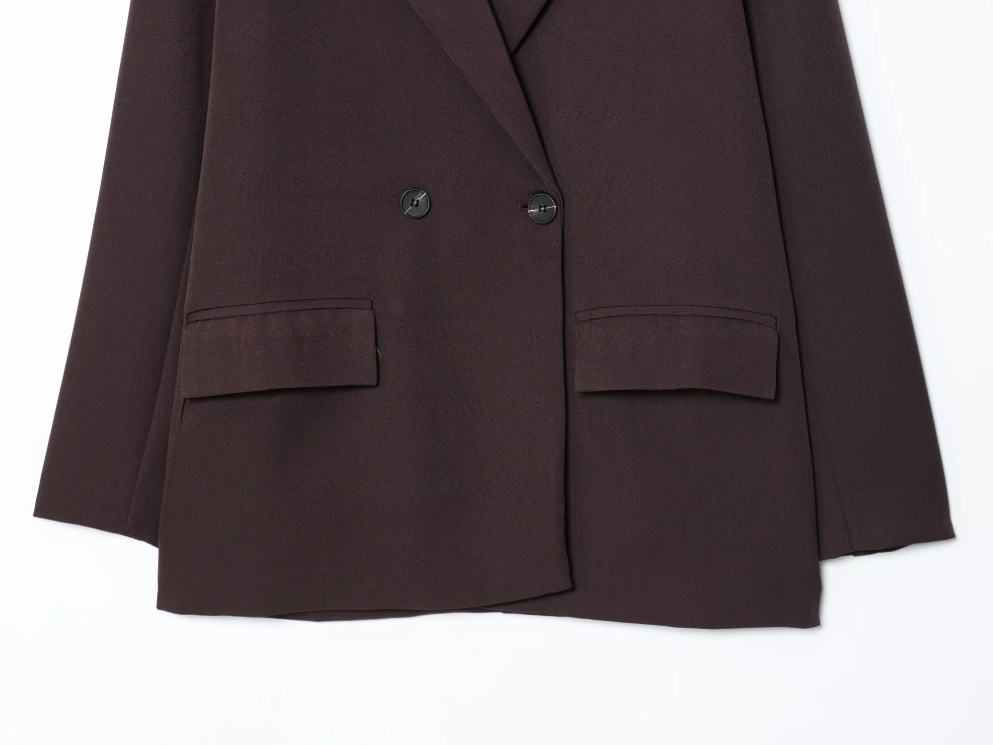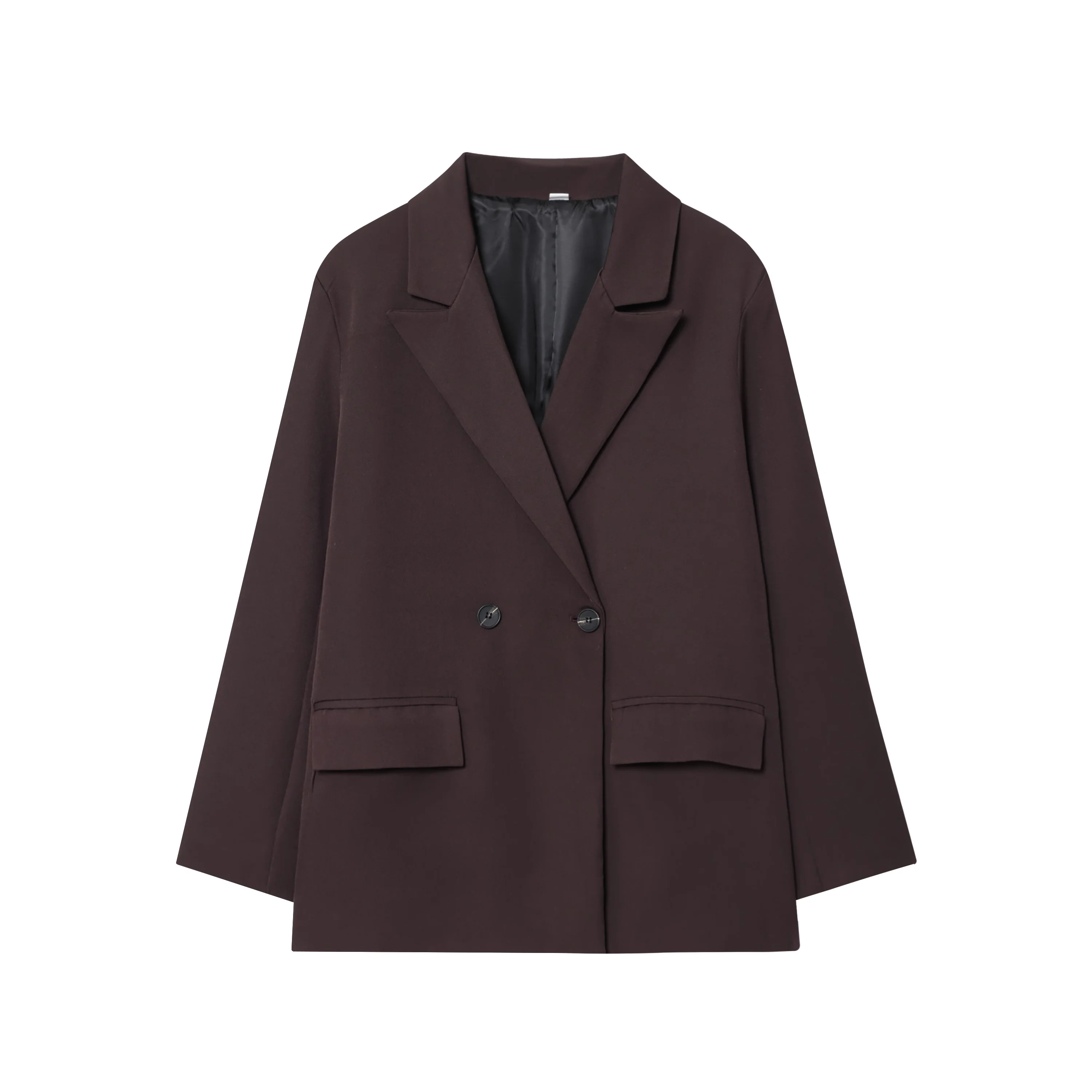 KONDALA Chic Brown Oversized Blazer Women V Neck Double Buttons Loose Blazer Jacket Fashion 2025 Fall Office Lady Casual Outwear