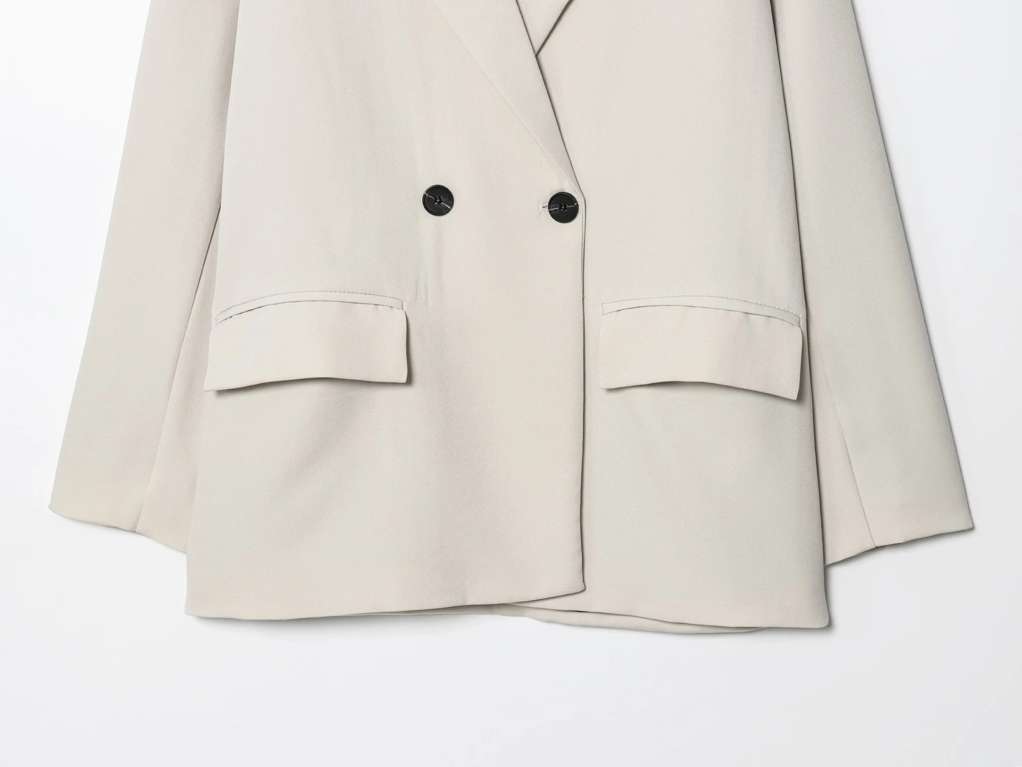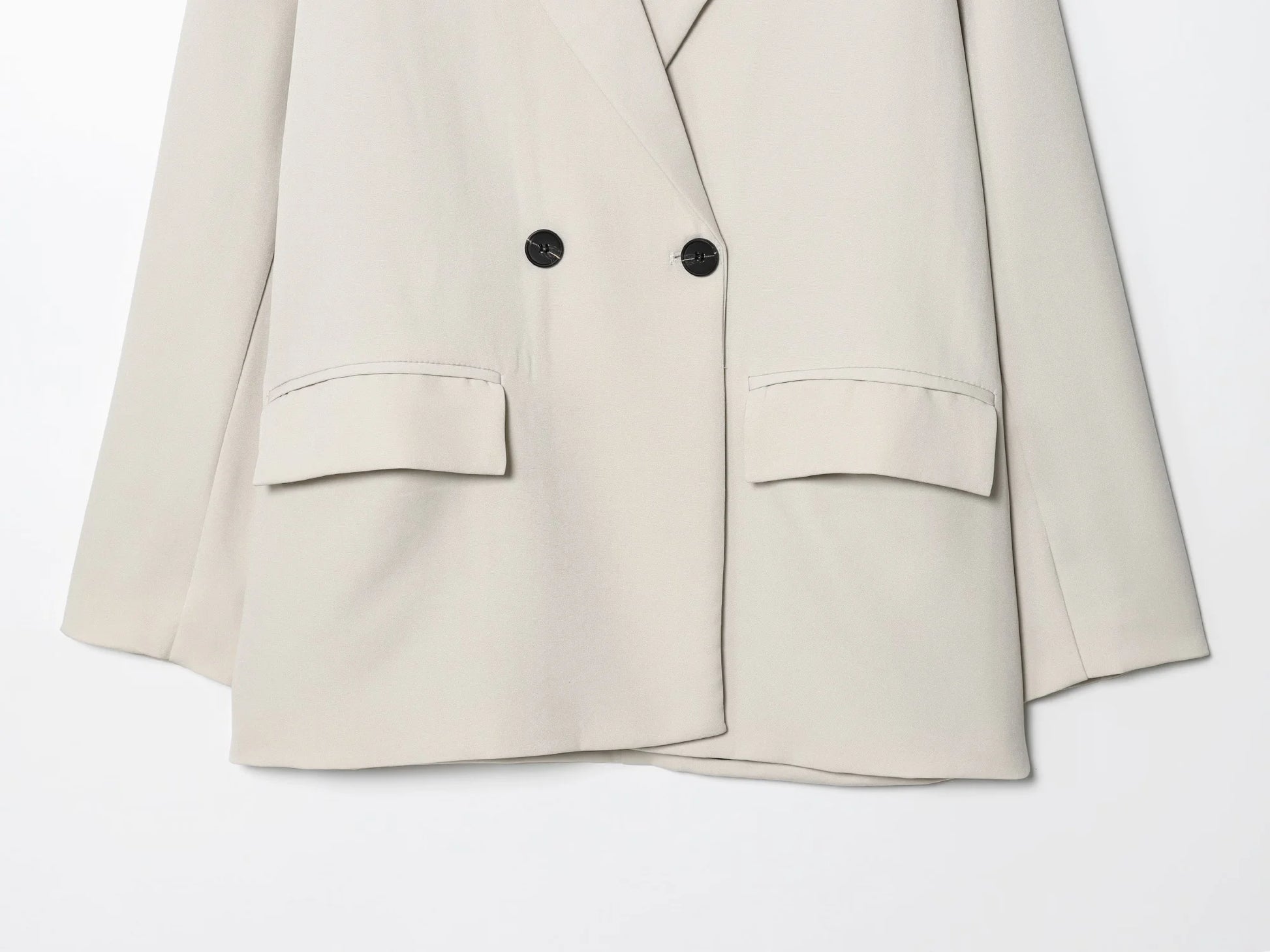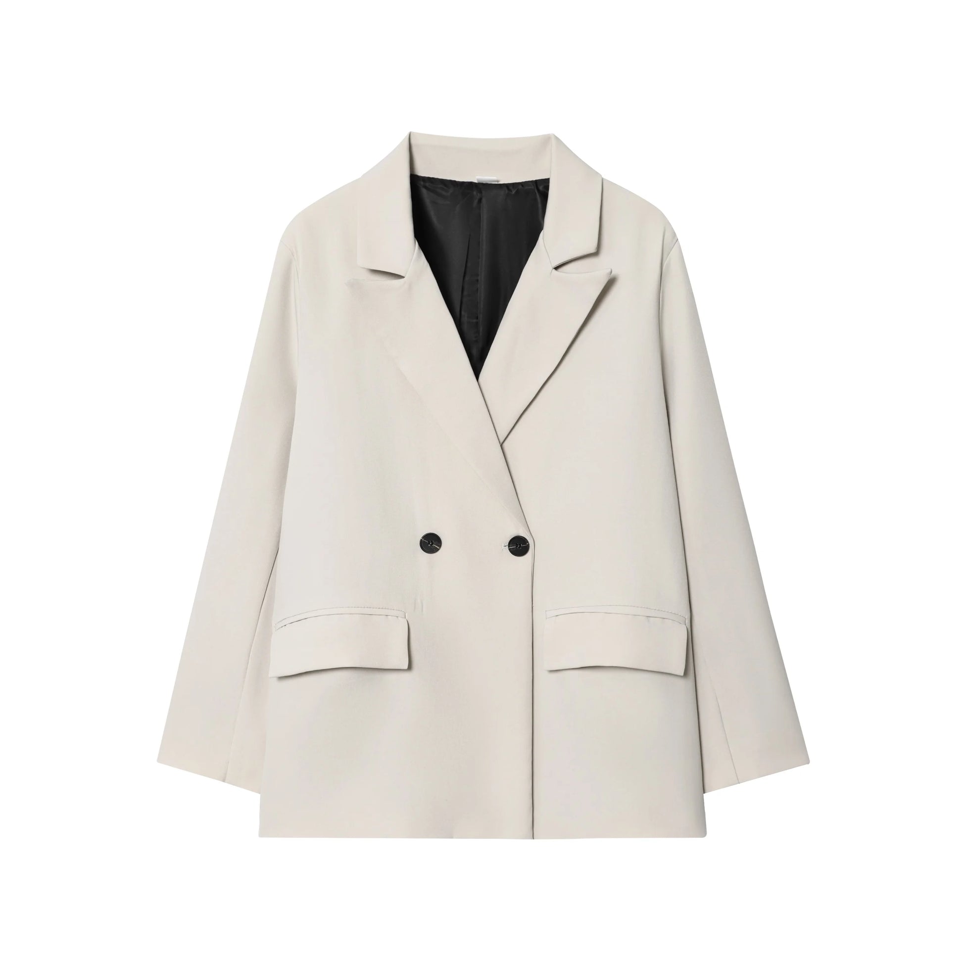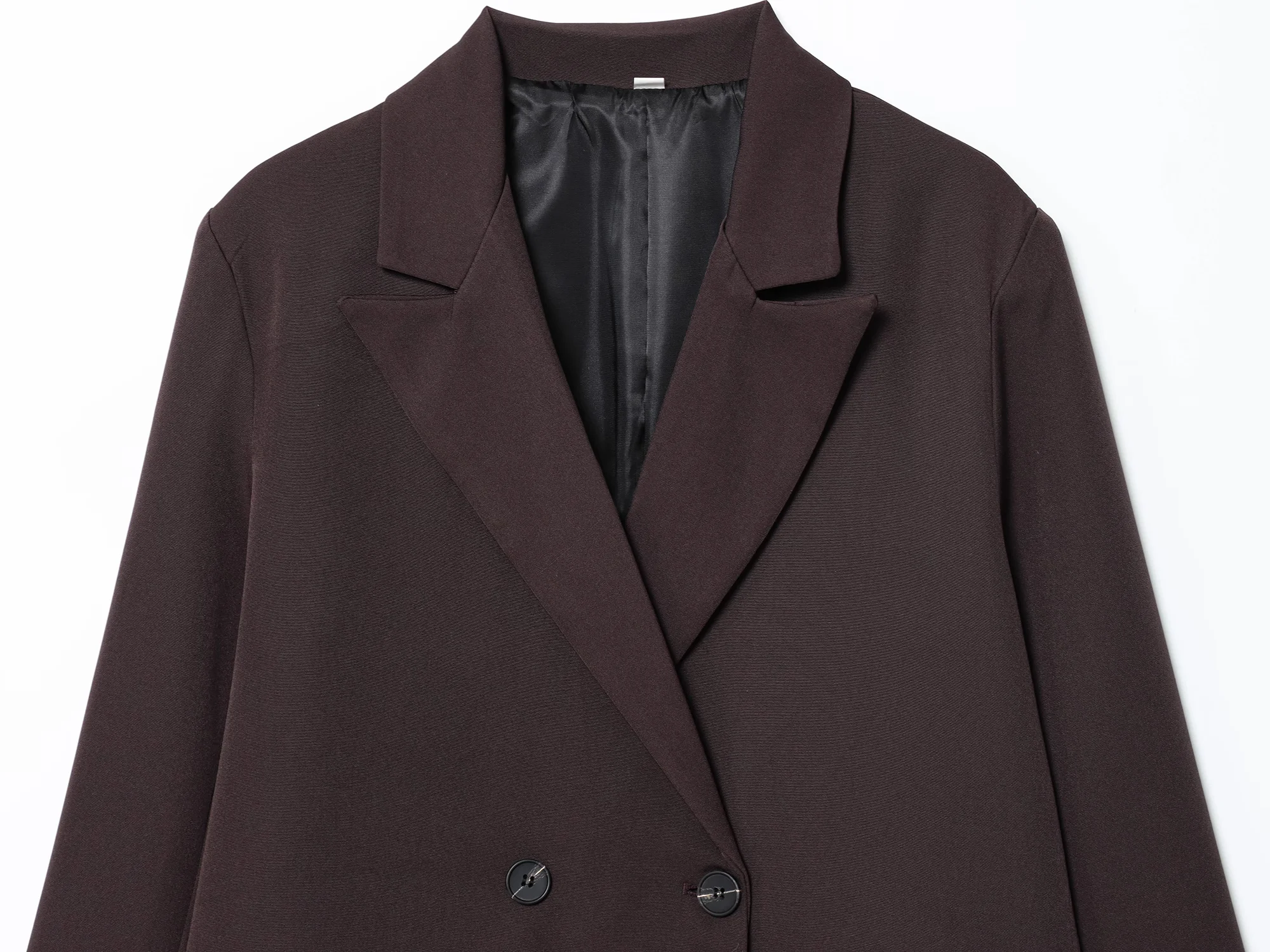 KONDALA Chic Brown Oversized Blazer Women V Neck Double Buttons Loose Blazer Jacket Fashion 2025 Fall Office Lady Casual Outwear