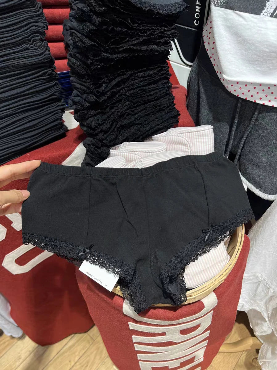 Lace Trim Black Tank Shorts Set Woman Summer Rose Folds V-neck Camisole+Bow Elastc Waist Panties Cotton Home Pajama 2 Piece Sets