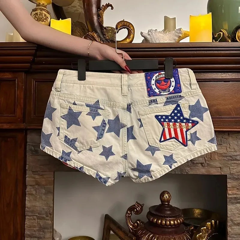 Light Colour Star Fresh Pattern Hip Hop Mini Denim Shorts Korean Style Street Sweet Girls Versatile Basics Shorts Summer Pants