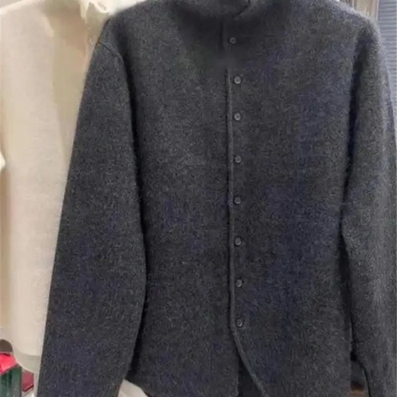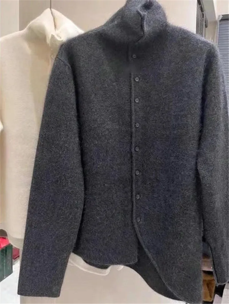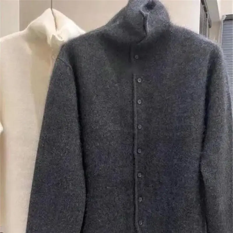Limiguyue High-end Thick Velvet Sweater Cardigan Women Autumn Winter Turtleneck Irregular Cashmere Knitted Jacket Versatile 321P