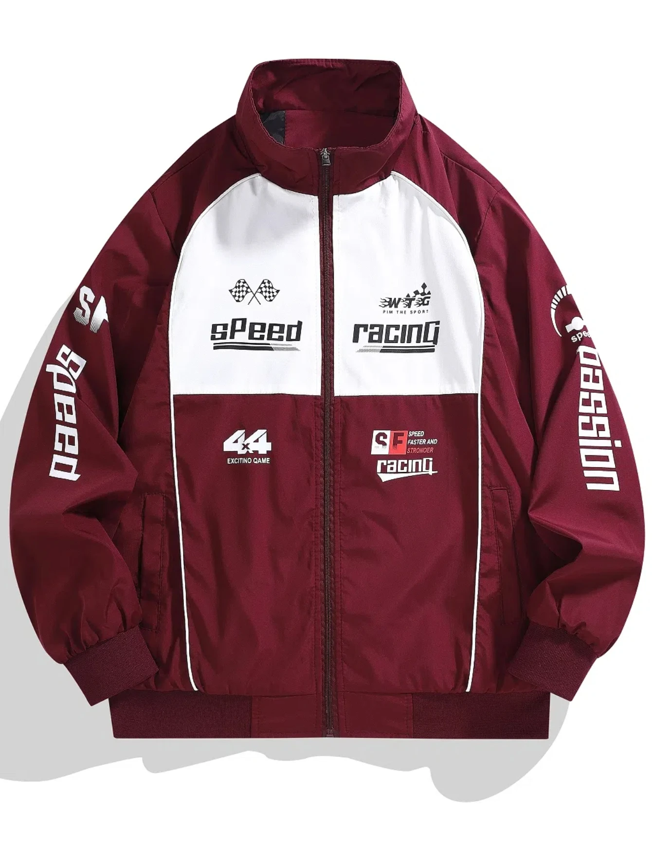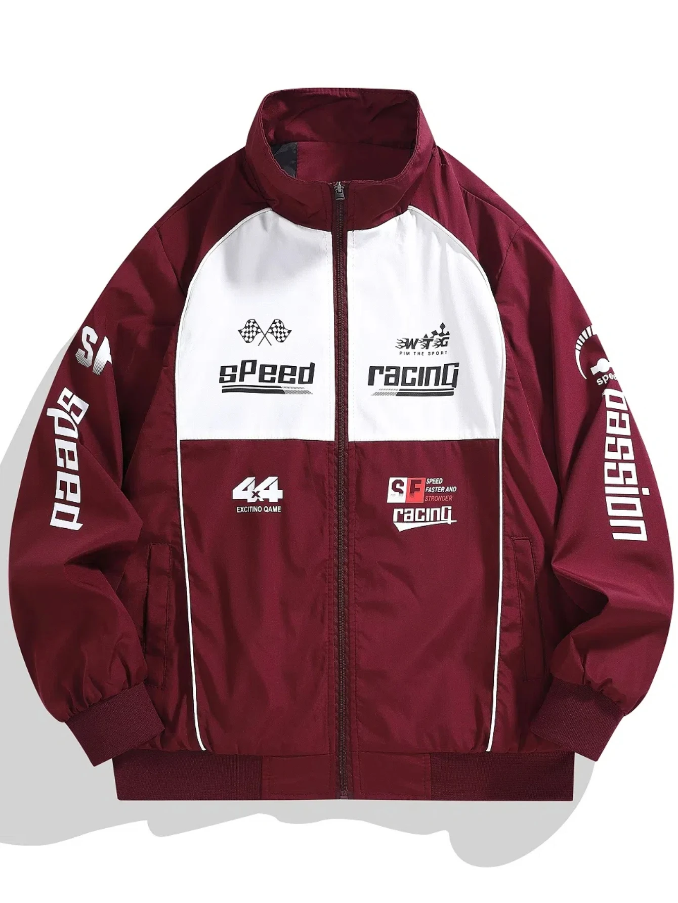 Men's Casual Sports Bomber Jacket - Racing Suit, Zipper Opening, Stand Collar, Long Sleeve with Letter Print - Perfect Matching Casual Wear