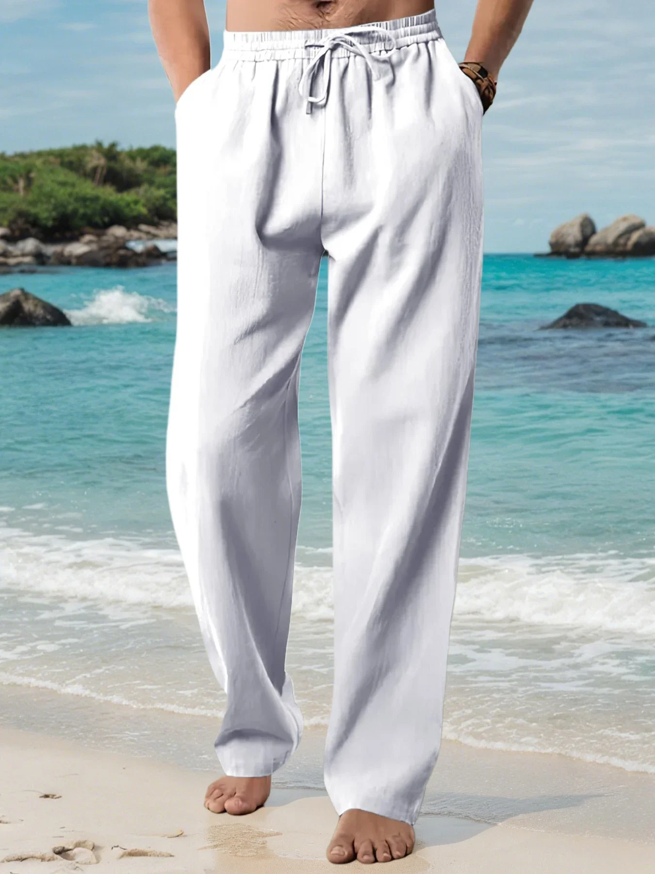Men's Cotton Linen Casual Long Pants Summer Loose Breathable Beach Pants Solid Color Drawstring Elastic Waist Male Trousers
