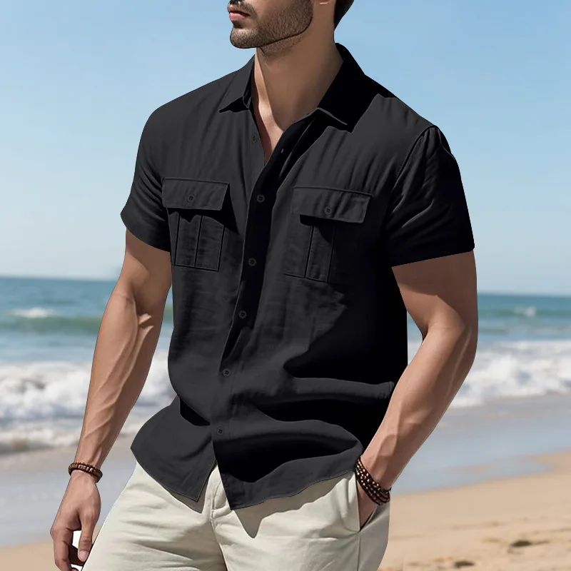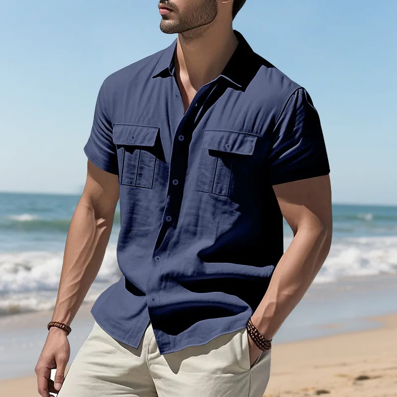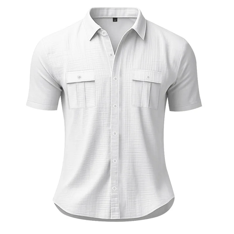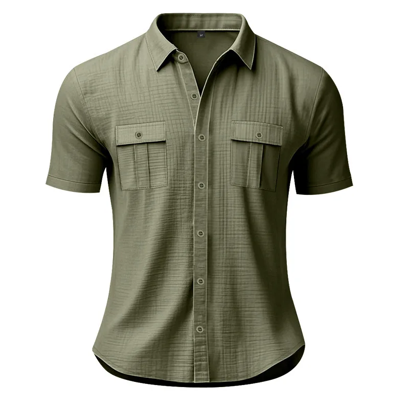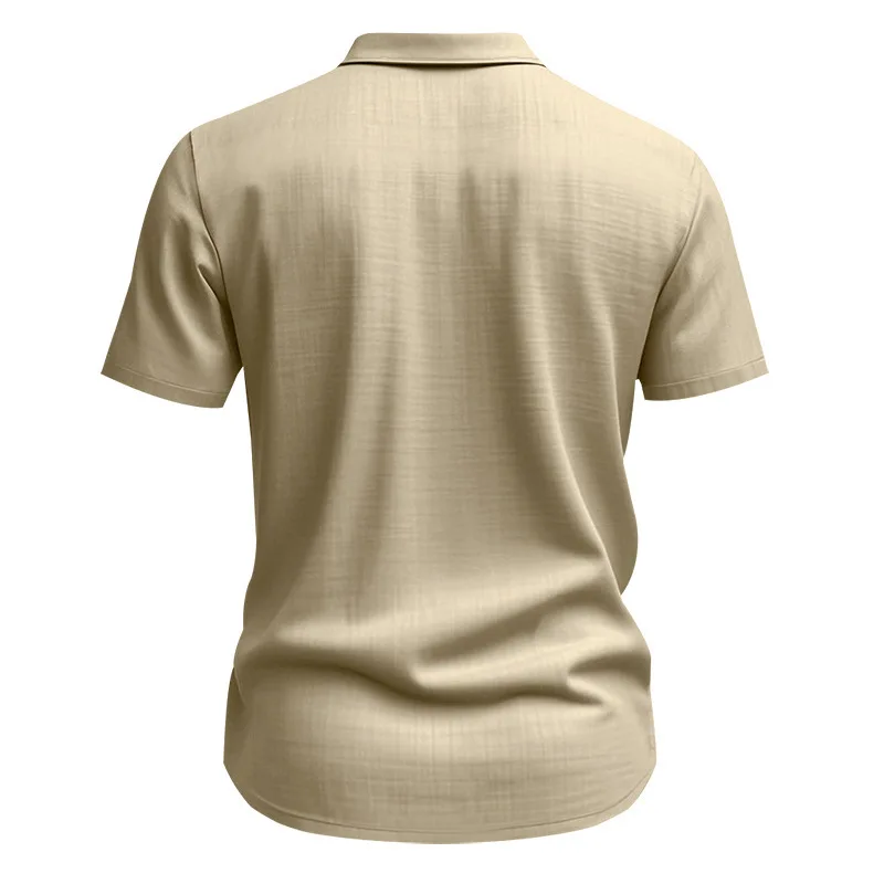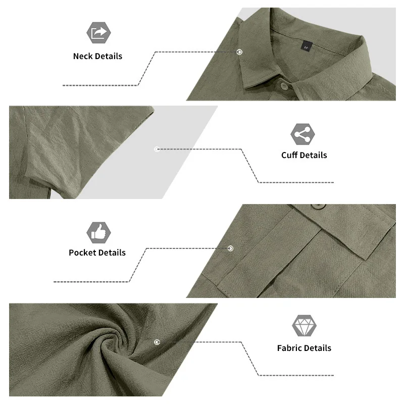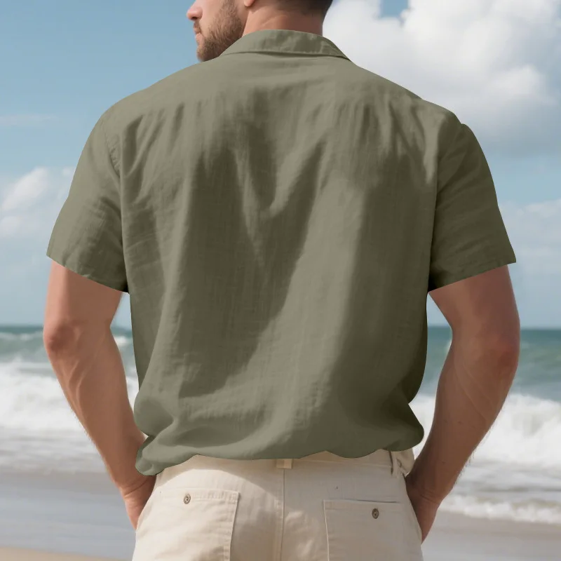 Men's Cotton Linen Short-Sleeved Shirt Summer Solid Color Stand-Up Collar Casual Beach Style plus Size S-5XL