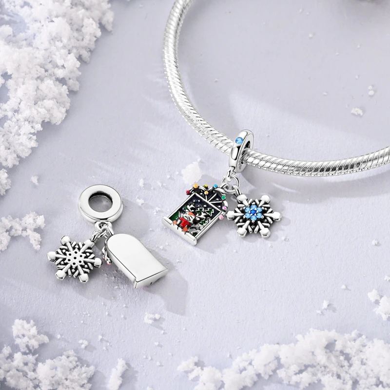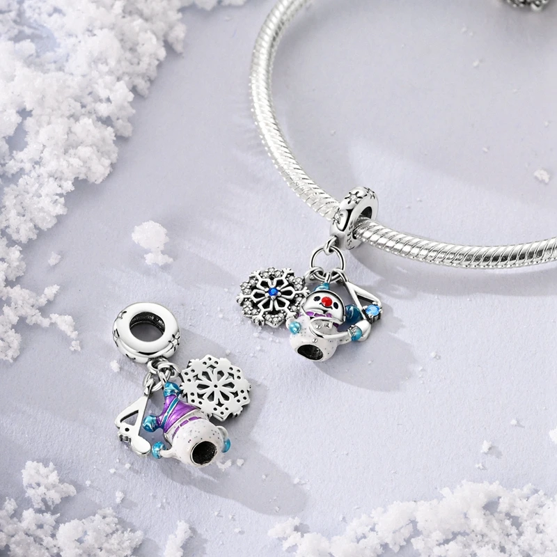 New Fireplace Snowman Sweater Sweet Romantic Christmas Winter Theme Charms Beads Fit Pan 925 Original Bracelets DIY Fine Jewelry