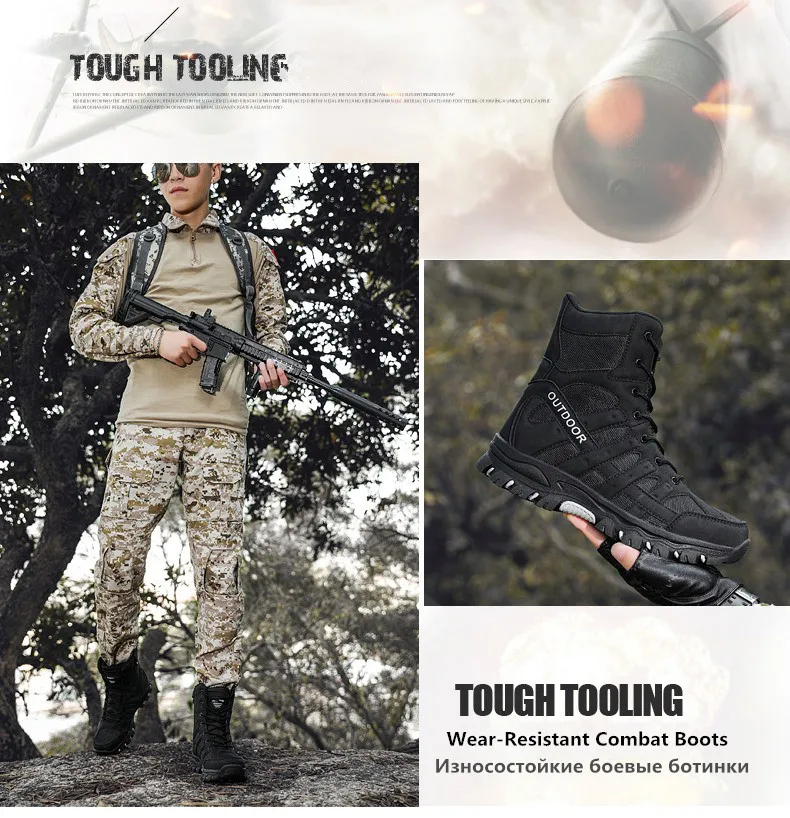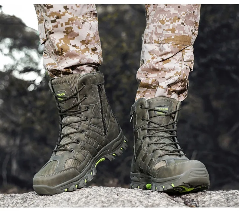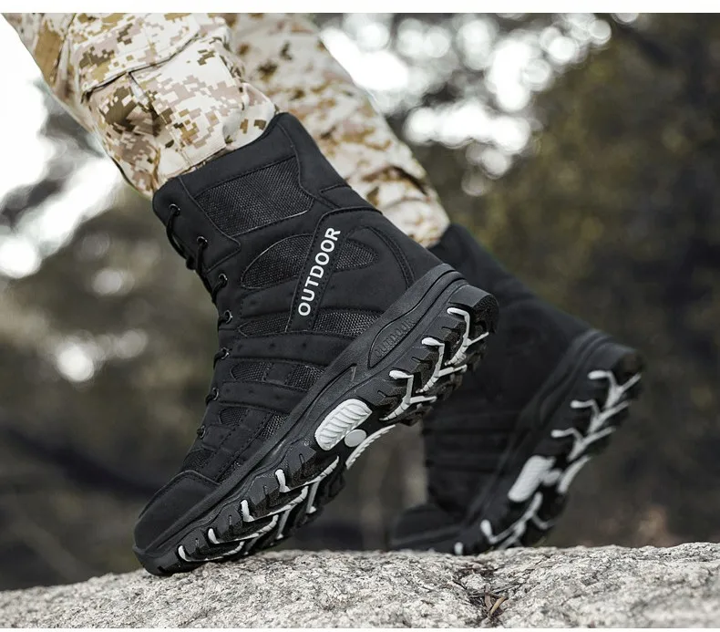 New Men's Boots Fashion Outdoor Men Hiking Boots High Top Breathable Men Desert Combat Ankle Boots Non-slip Motorcycle Boots