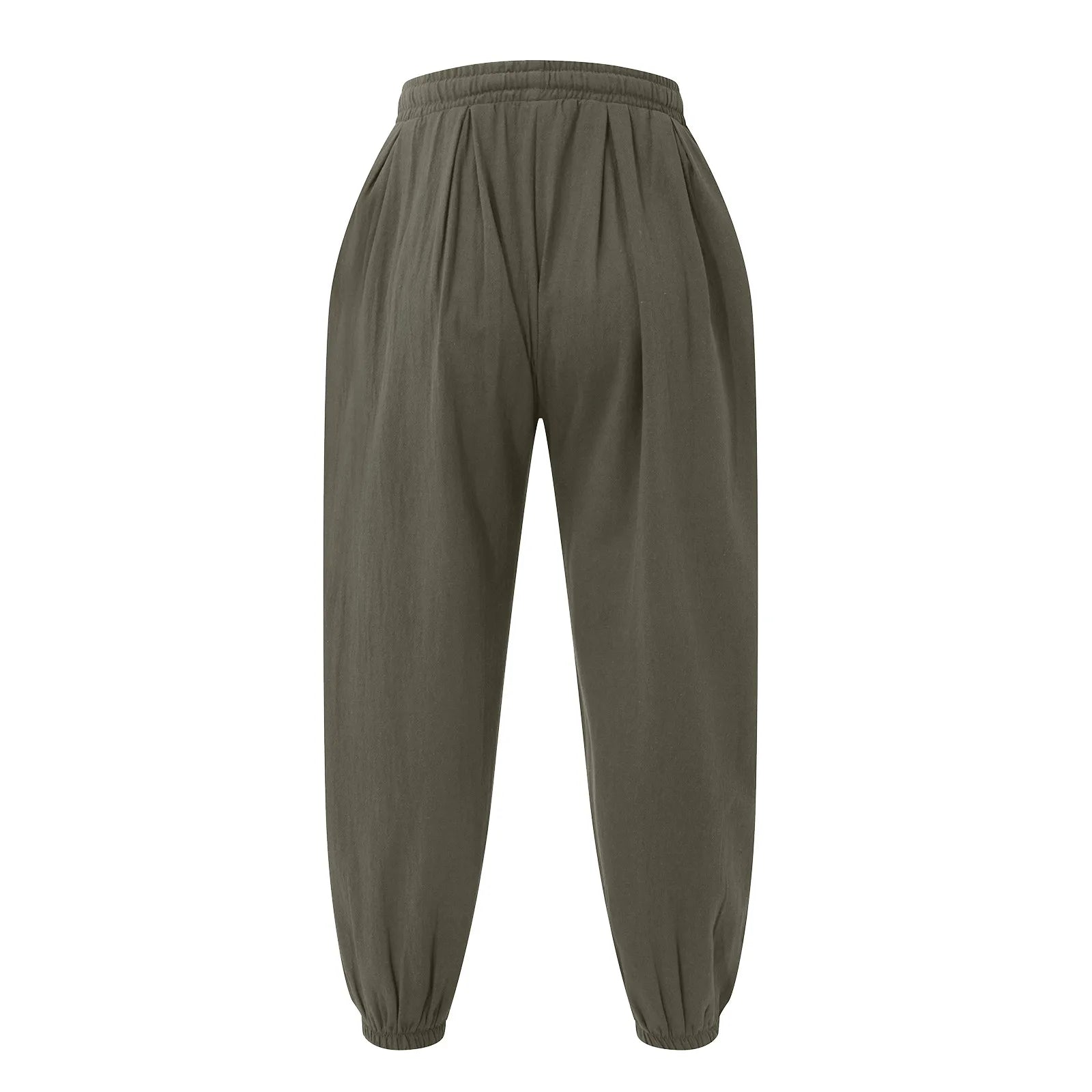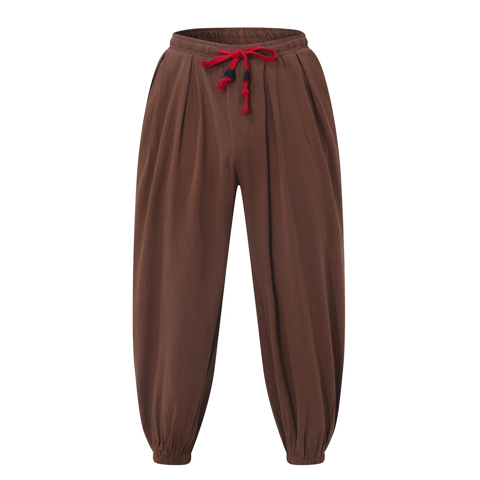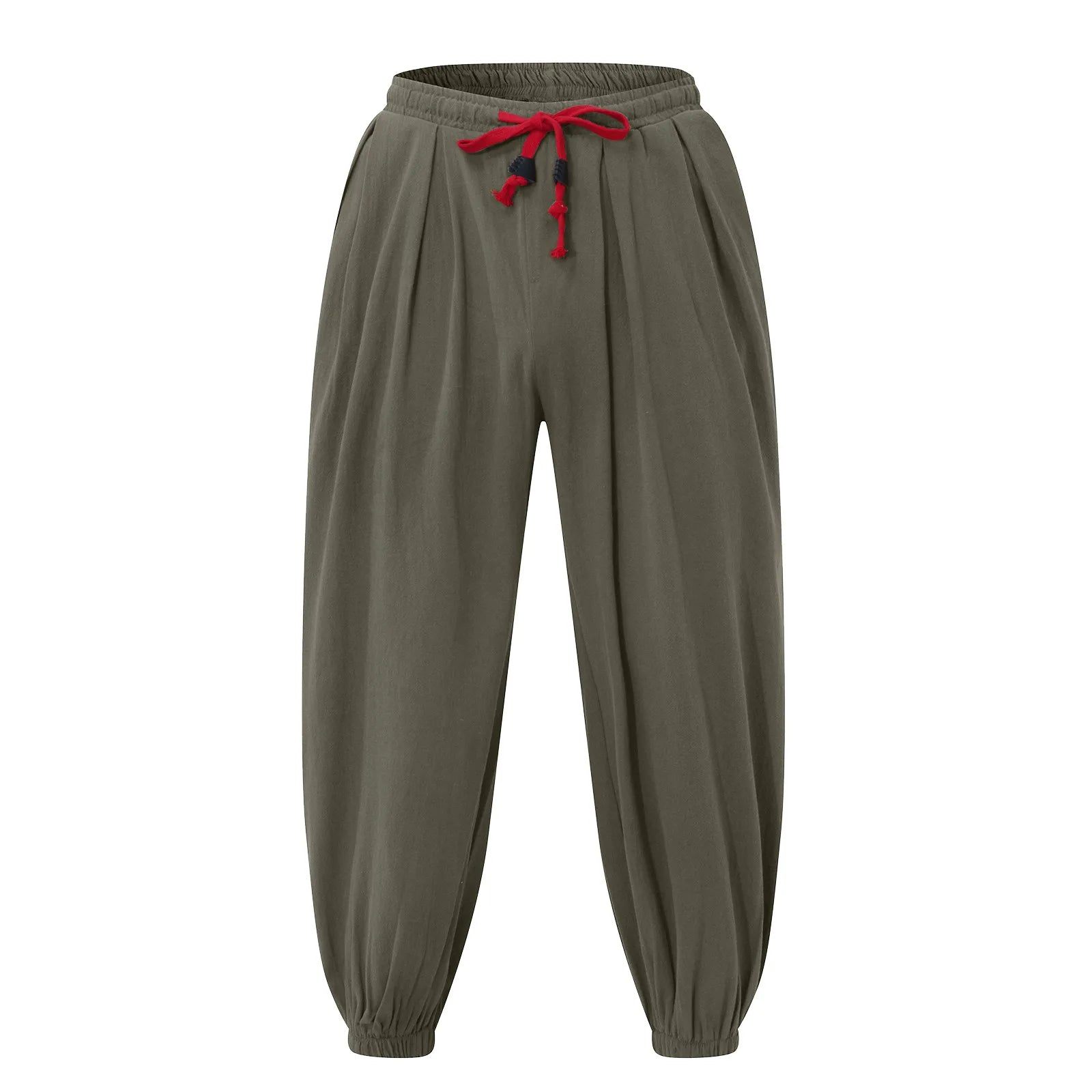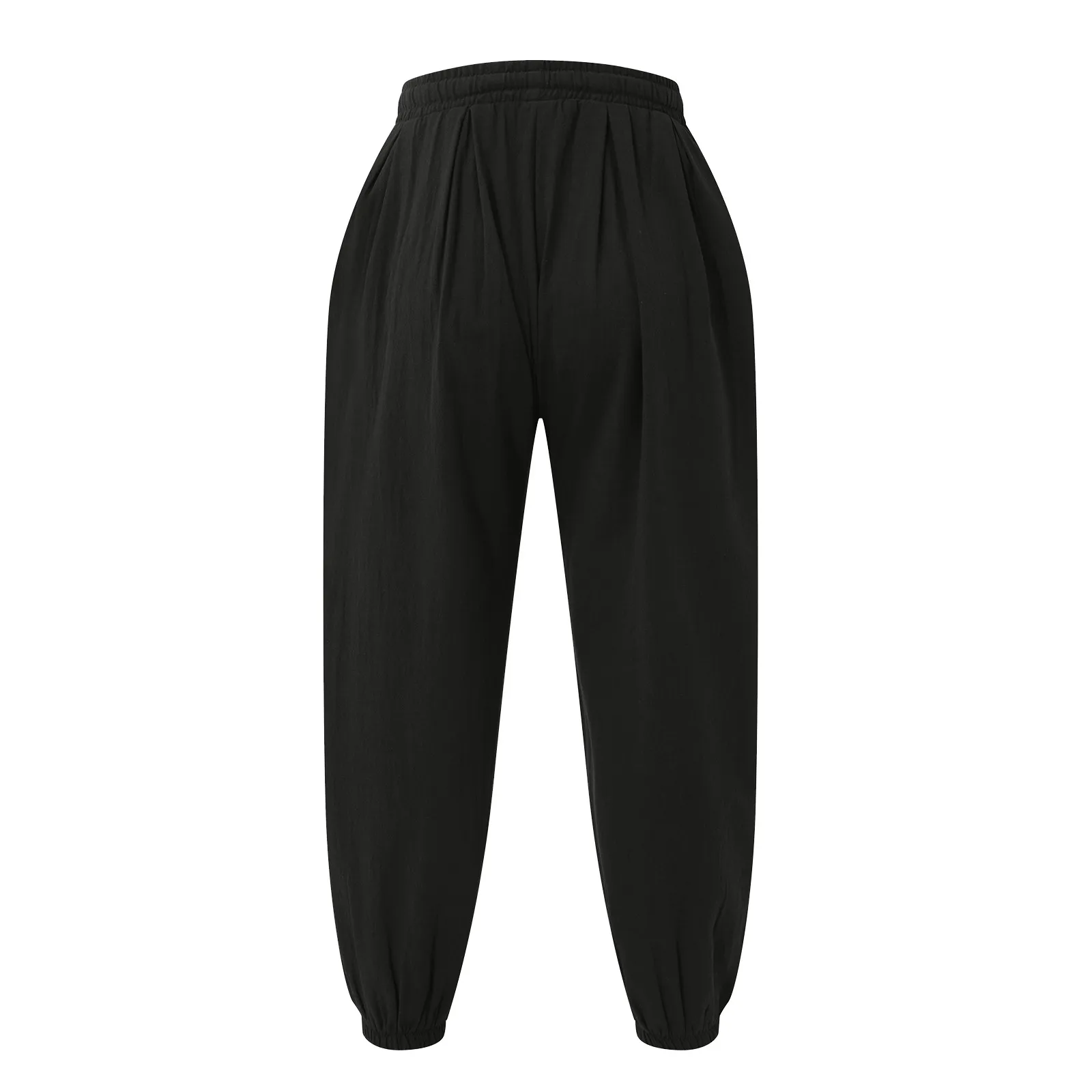 Men's Fashion Cotton Linen Casual Pants Loose Wide Legs Elastic Leggings